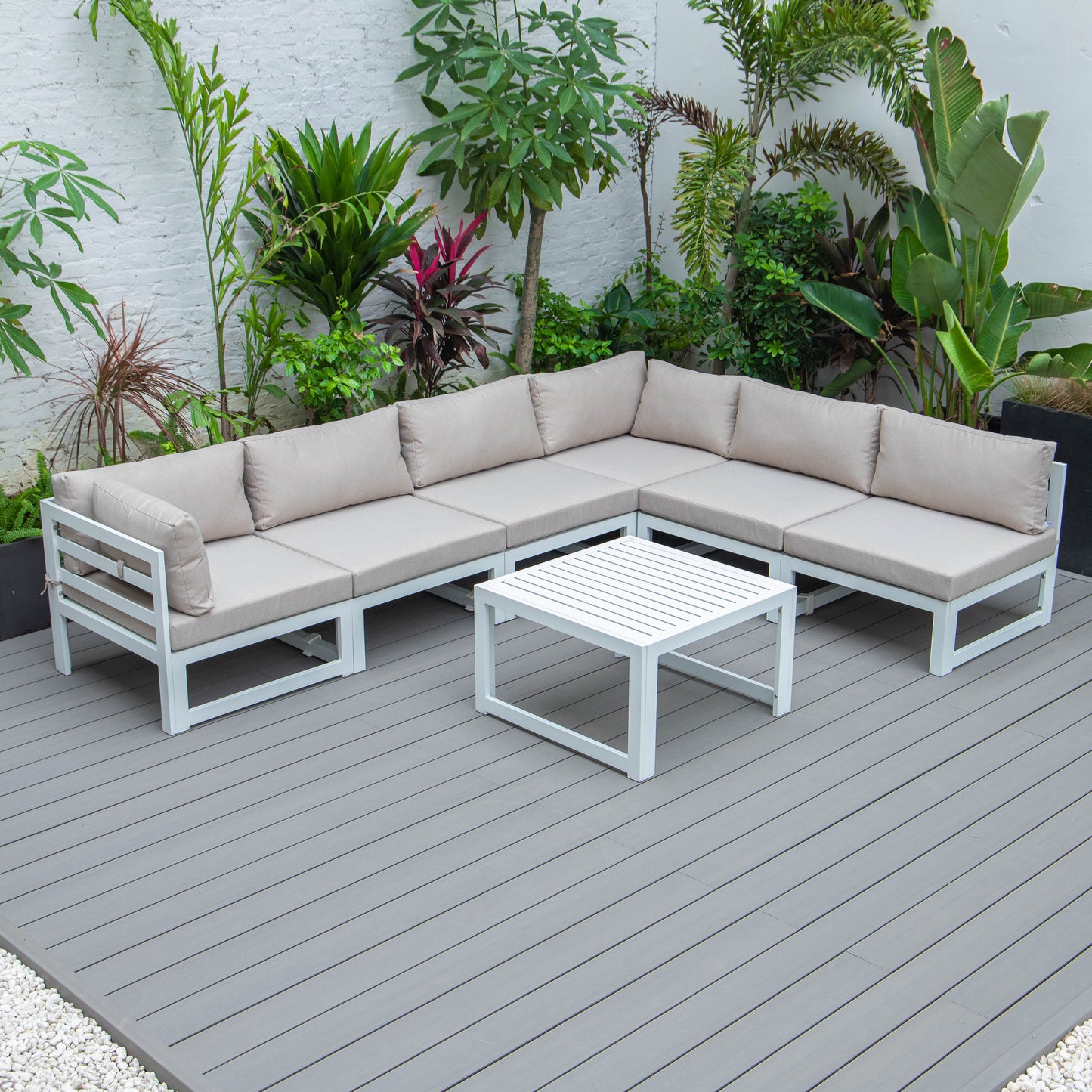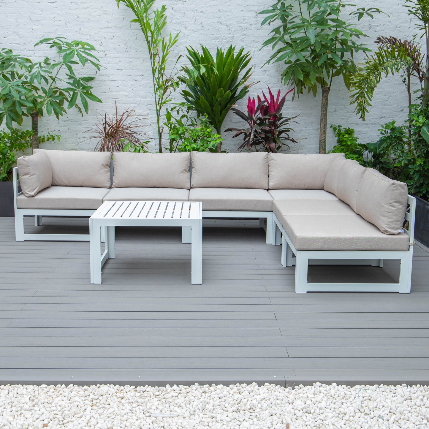 Chelsea 7-Piece Patio Sectional And Coffee Table Set White Aluminum With Cushions