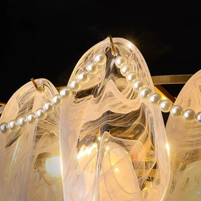 This is New Classic product in 2026. Sina 4 Tier Glass Pendant Chandelier is a statement-making fixture with four cascading tiers of art glass and pearl-detailed shades that float from a slim round canopy. Softly rippled glass panels catch the light from every angle, so even when dimmed the chandelier becomes a focal point in double-height living rooms, dining spaces, and stairwells. Highlights Four-tier cascading design – Staggered glass shades create a waterfall look that suits high ceilings, staircases, and open-concept living