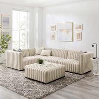 • Modern appeal surrounds the Conjure Channel Tufted Upholstered Fabric 5-Piece Sectional Sofa. Soft and durable fabric upholstery covers dense foam padding and an individually wrapped spring coil system for a supportive living room sofa that will become the go-to lounge spot for family and friends. Vertical channel tufting and subtle French piping adds depth to this vintage inspired sectional sofa that effortlessly becomes the focal point in your living room. Solidly constructed from wood and plywood, this sofa features non-marking foot caps and boasts a matte black base. Versatile and elegant, this sectional sofa is ideally suited for a variety of decor styles in your living room, lounge, or home office. Each Seat Weight Capacity: 331 lbs.