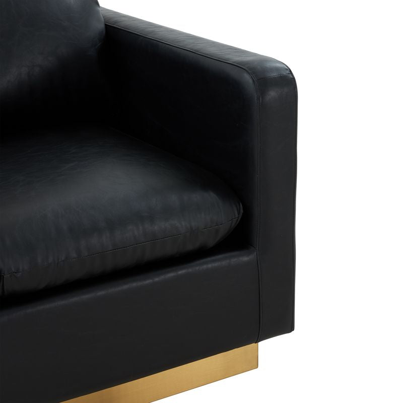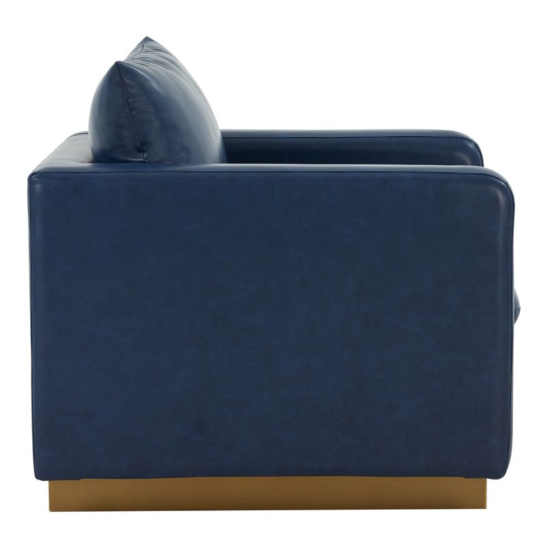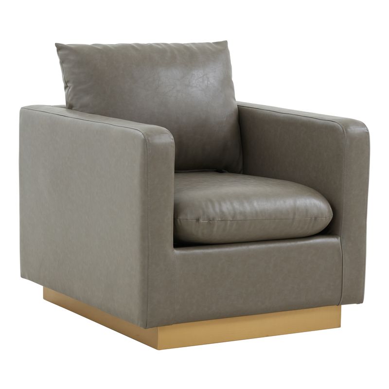 This gorgeous Elvira accent chair brings together a clean design, innovative engineering and craftmanship. A durable wood frame and Stainless steel Base are topped with thick and comfortable cushions Upholstered in leather to complete your room. The foam-filled seat cushion sits on pocket springs that add support and prevent sagging over time, with enough space for you to sit comfortably with room to spare. This is a durable choice that can stay in good shape for years. It has a modern style, which brings a timeless feel to your home.