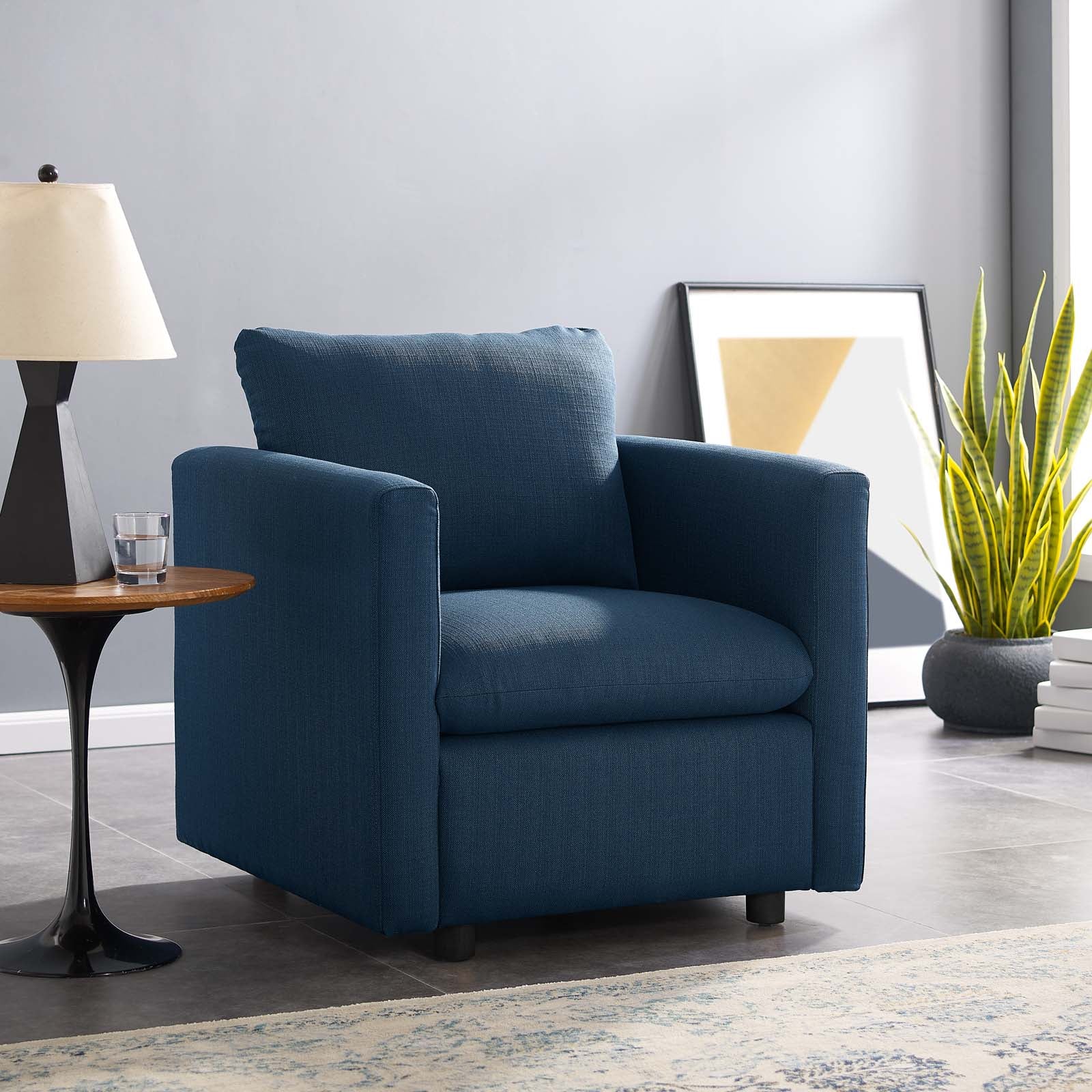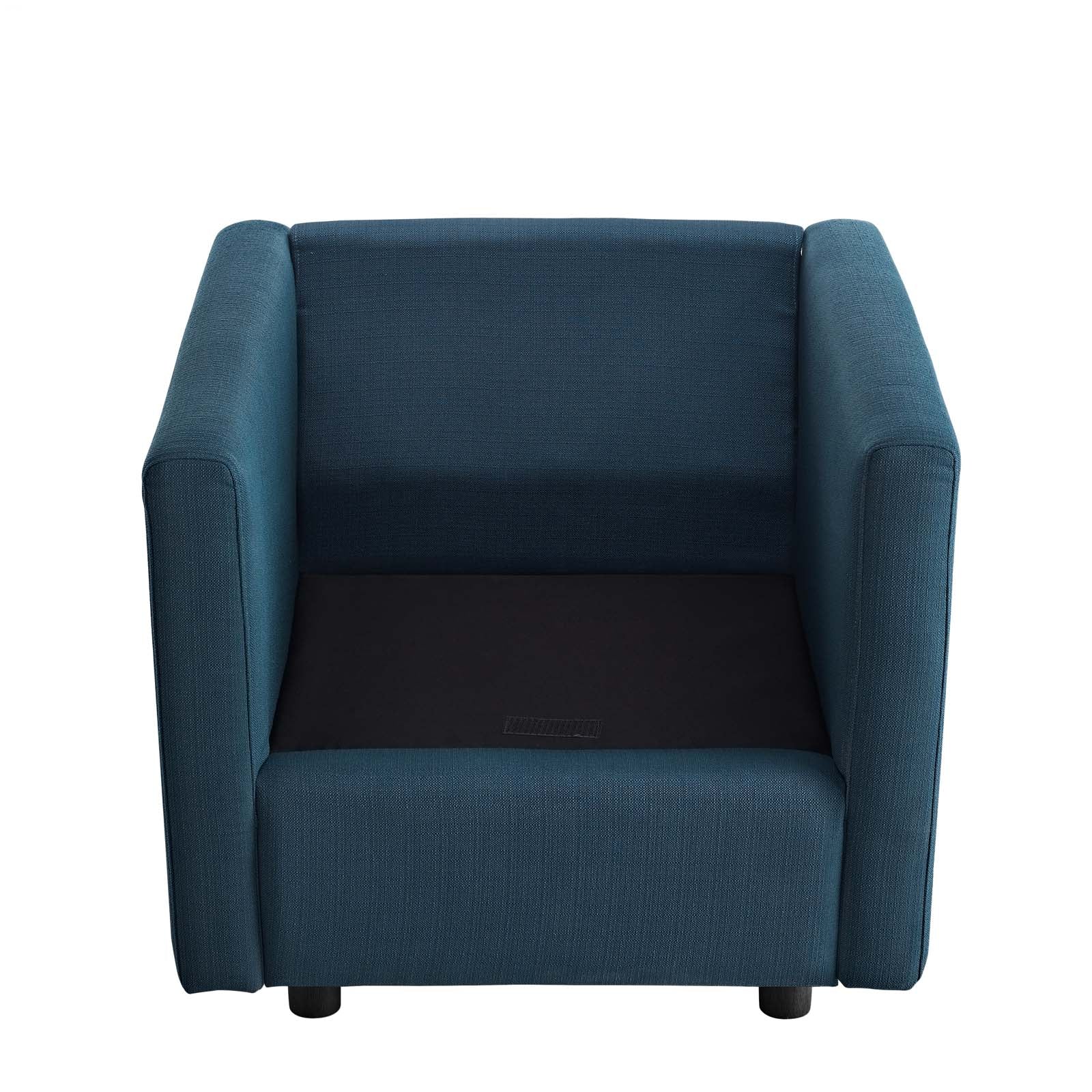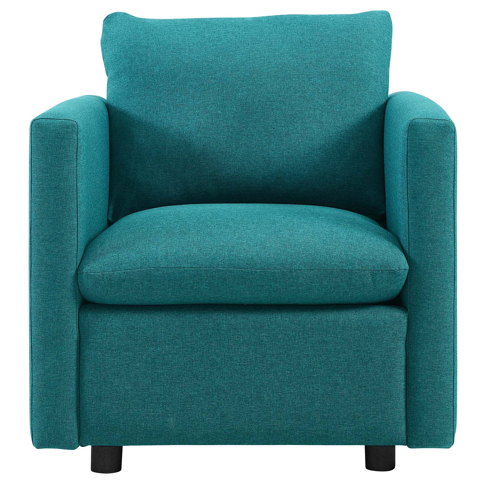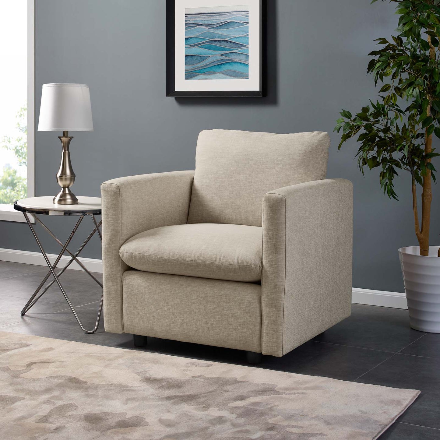Lounge in style with Activate. A versatile addition to a family room, apartment, office, or small living space, Activate is a cozy modern chair made with dense foam padding, upholstered in soft polyester fabric, and black wood legs. Say goodbye to the days of hauling heavy furniture. Activate offers modern-day convenience as it ships directly to your home or apartment in a portable, compact box. With a casual yet tailored aesthetic, this living room accent chair easily unpacks to become a favorite lounge spot in your home. Chair Weight Capacity: 441 lbs.