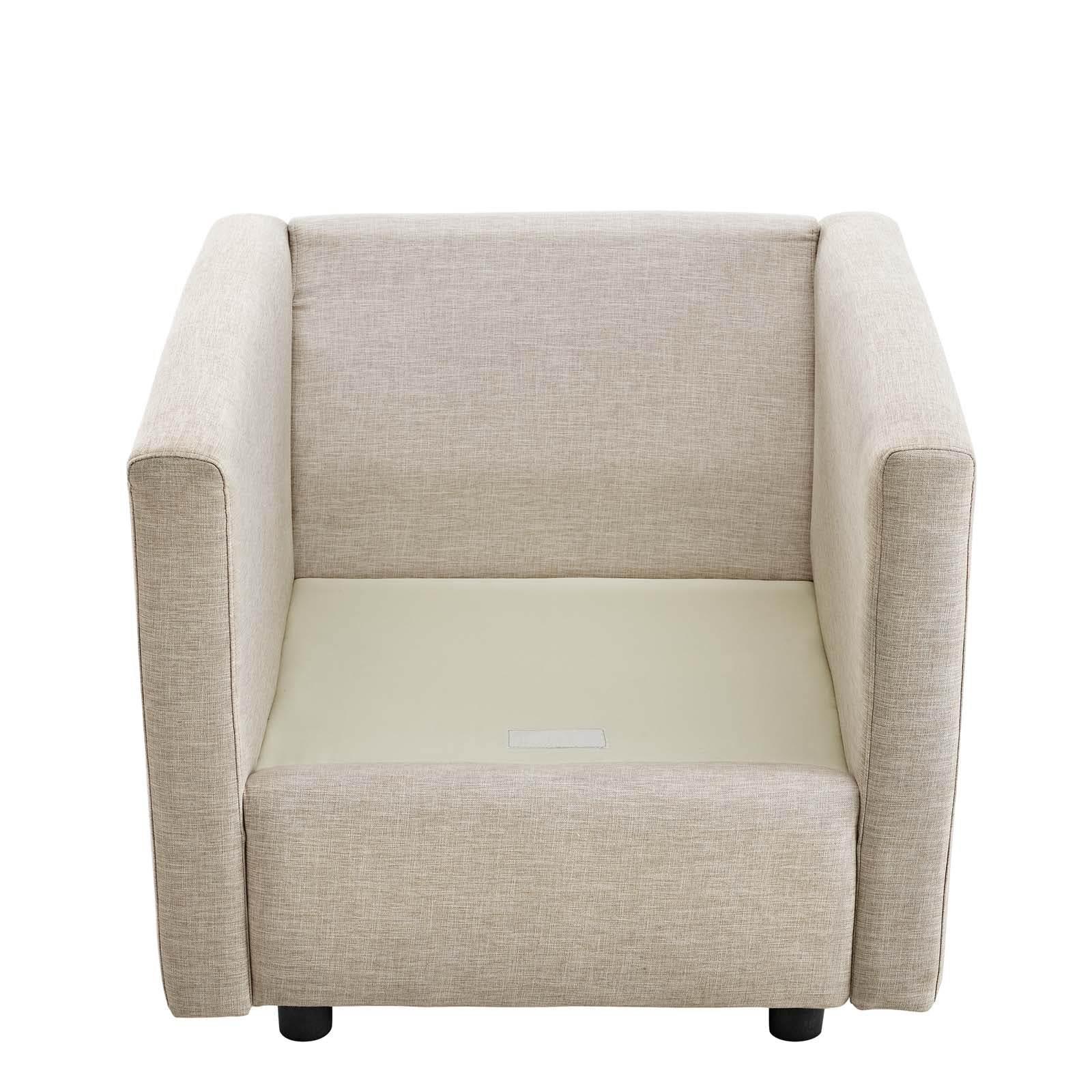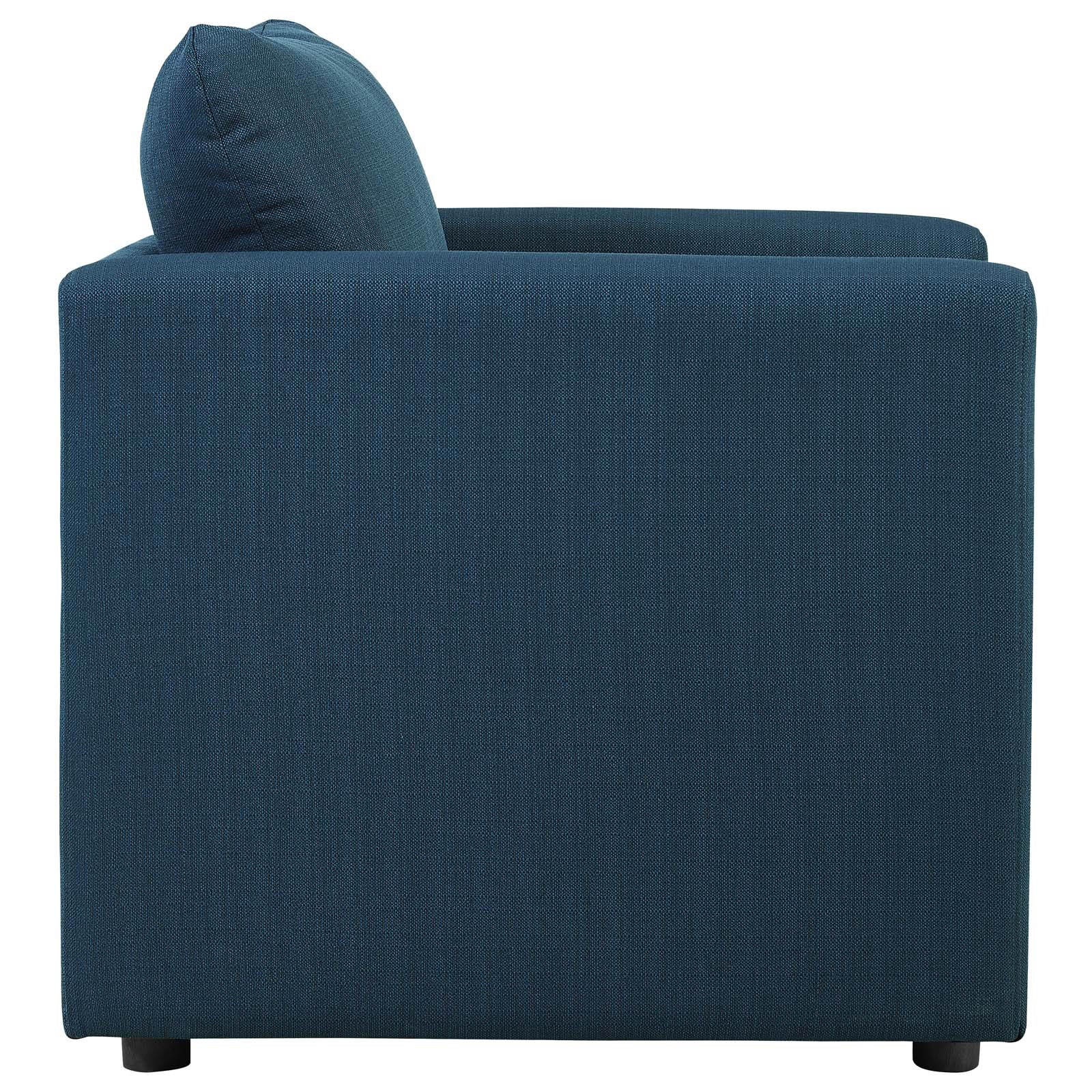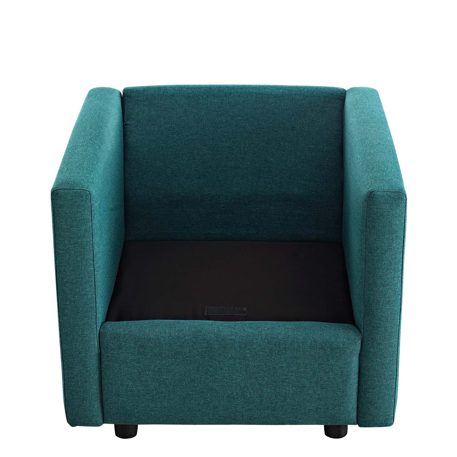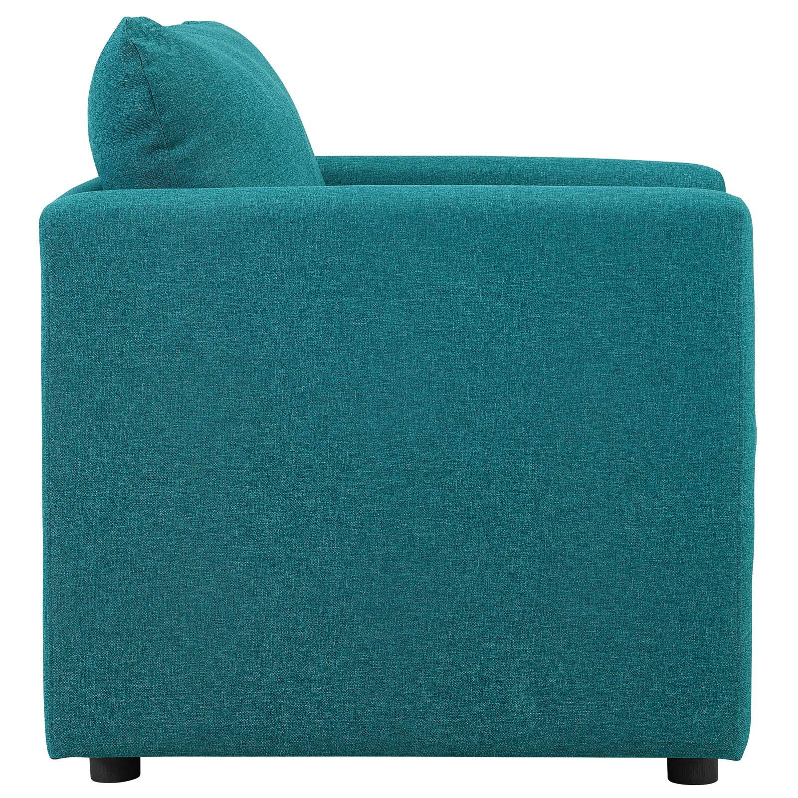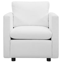 Lounge in style with Activate. A versatile addition to a family room, apartment, office, or small living space, Activate is a cozy modern chair made with dense foam padding, upholstered in soft polyester fabric, and black wood legs. Say goodbye to the days of hauling heavy furniture. Activate offers modern-day convenience as it ships directly to your home or apartment in a portable, compact box. With a casual yet tailored aesthetic, this living room accent chair easily unpacks to become a favorite lounge spot in your home. Chair Weight Capacity: 441 lbs.