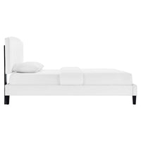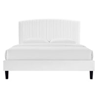 Introduce tasteful elegance to a teenager's bedroom or guest bedroom with the Alessi Performance Velvet Full Platform Bed. Subtly arched, this tufted bed brings a glam deco presence to your bedroom with its channel tufting and vintage modern style. The padded full headboard and side rails come covered in soft, stain-resistant performance velvet upholstery that grants rich texture to the luxurious design. Resting atop tapered black wood legs, this platform bed frame crafted with MDF and LVL is a sturdy mattress foundation for memory foam, innerspring, latex, and hybrid mattresses. With supporting legs and a reinforced center beam, this upholstered bed is complete with a poplar wood slat support system that offers lasting stability and healthy air circulation. Mattress not included. Assembly required. Full Bed Weight Capacity: 800 lbs.