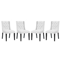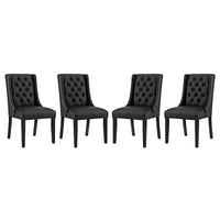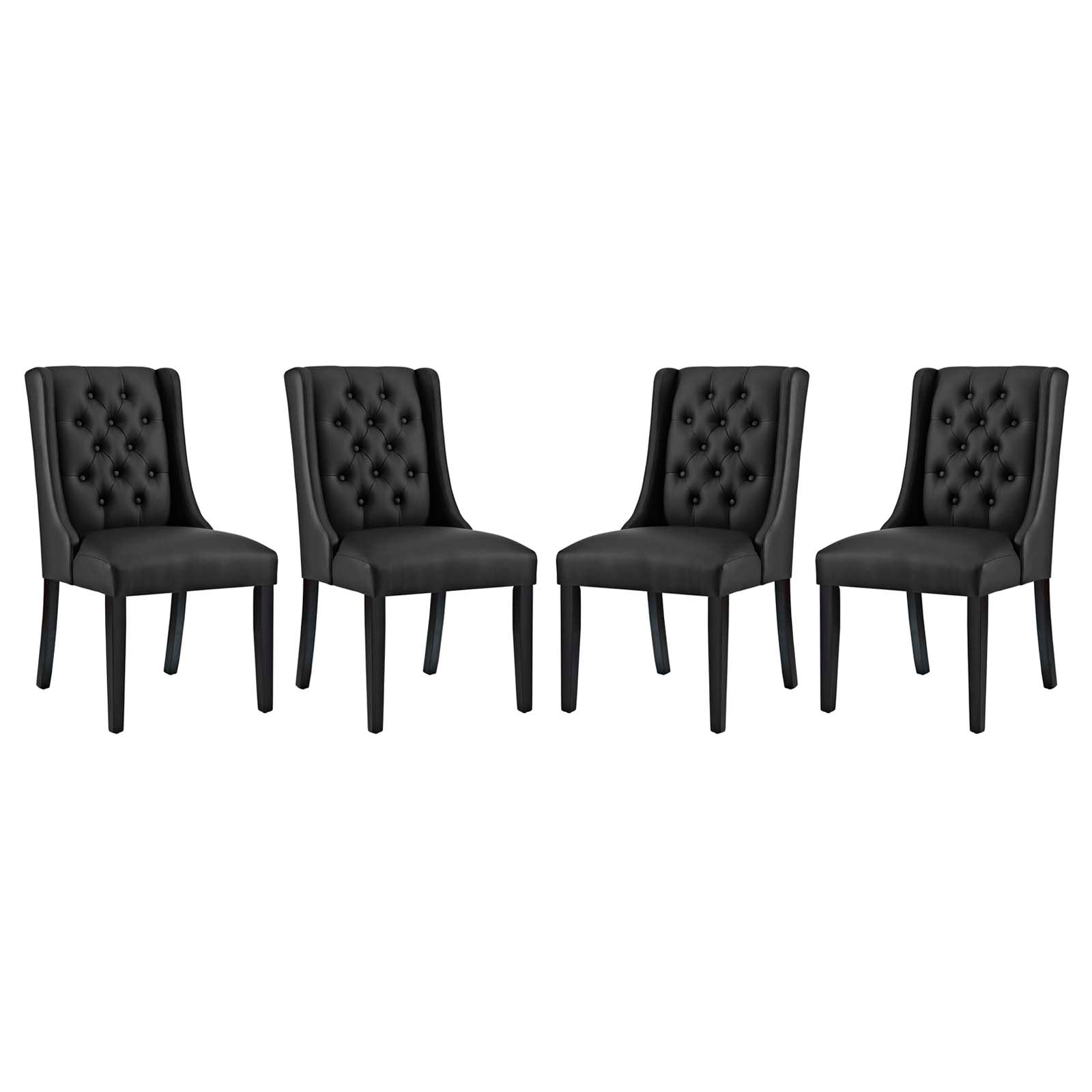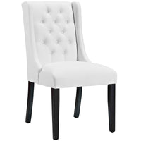 Bestow splendor with Baronet. Charm and elegance adorn this luxurious button tufted dining chair complete with sleek curves and dignified form. Featuring dense foam padding, fine vinyl upholstery, a solid wood frame, and non-marking foot glides, Baronet is a stylish dining chair perfect for the modern home.