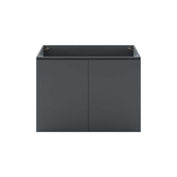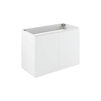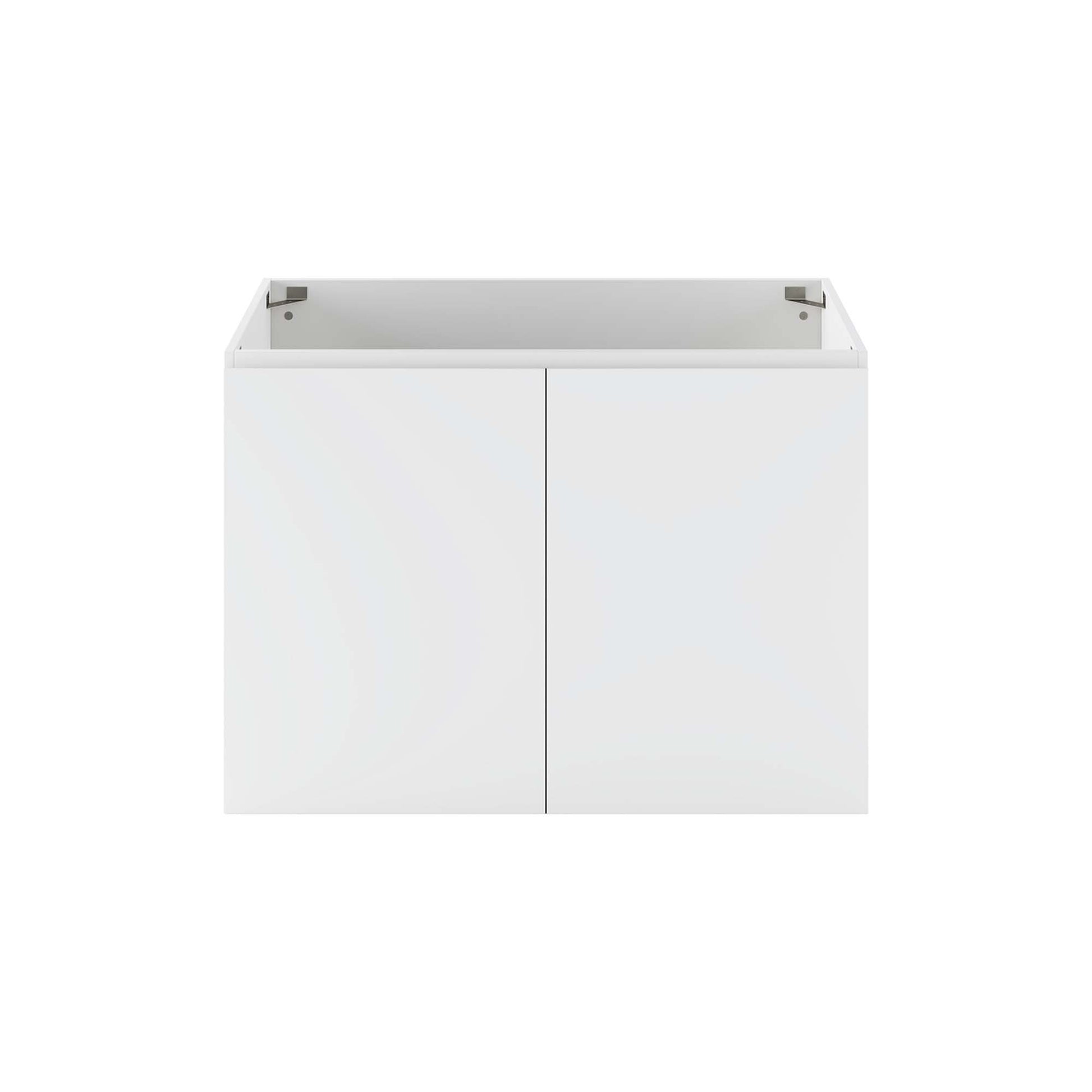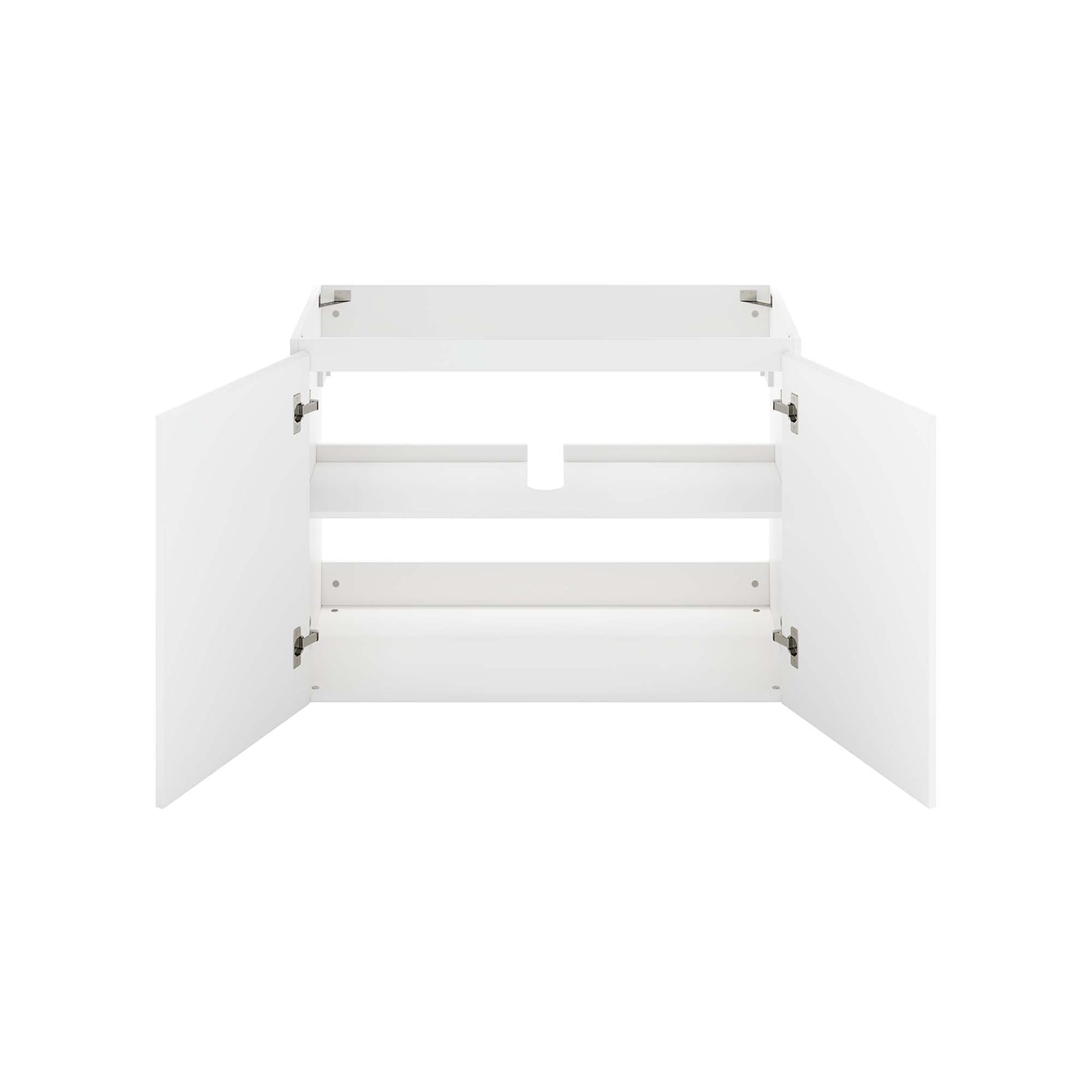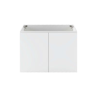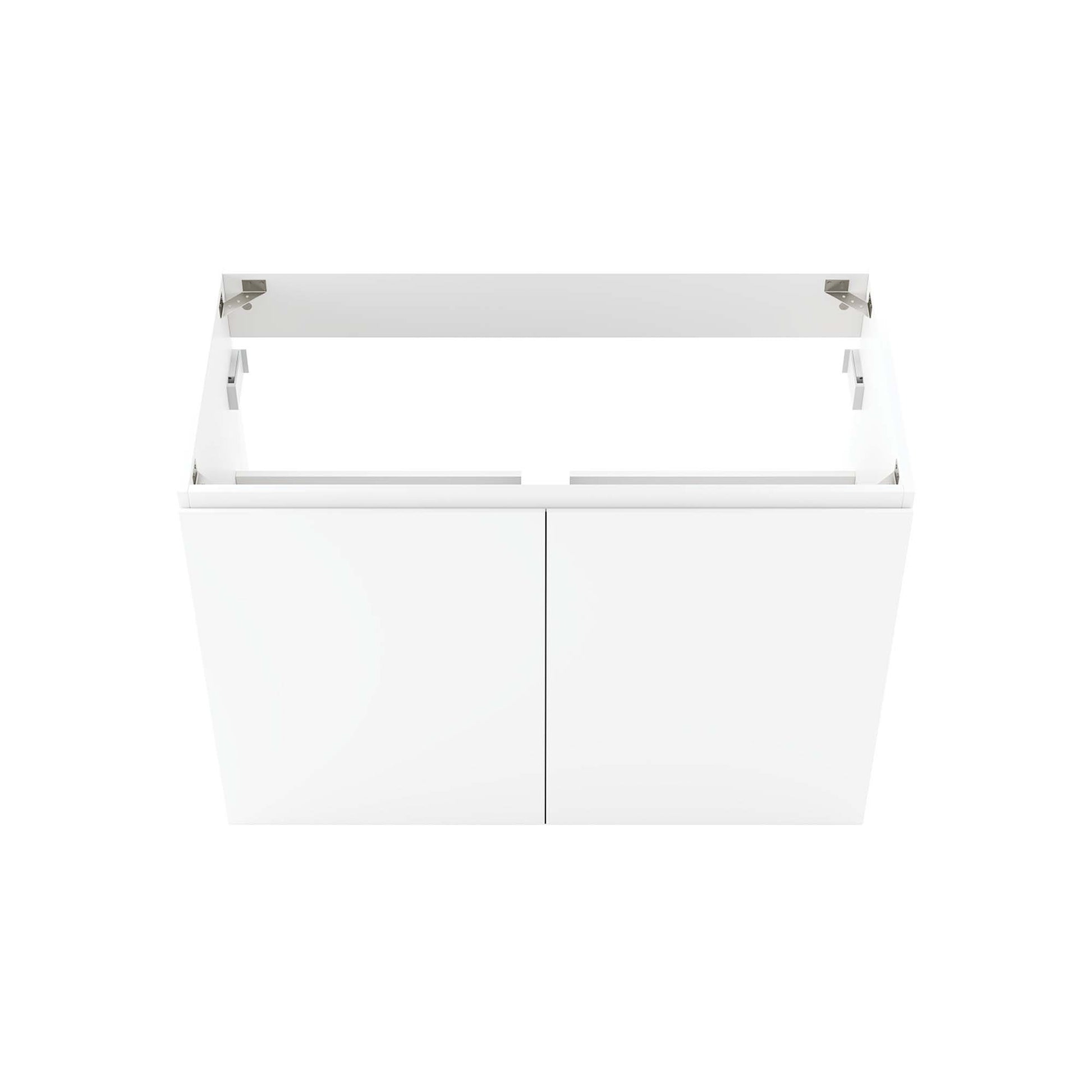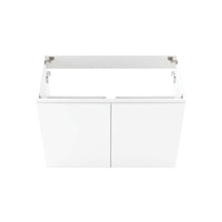 The sleek look and clean-lined silhouette of the Bryn 36" Wall-Mount Bathroom Vanity add modern style to your bathroom space. Durably crafted with particleboard and melamine, this vanity mounts directly to the wall and features ample storage space under the sink behind two soft-close doors. Assembly required. Sink basin and fixtures not included.
