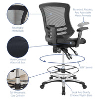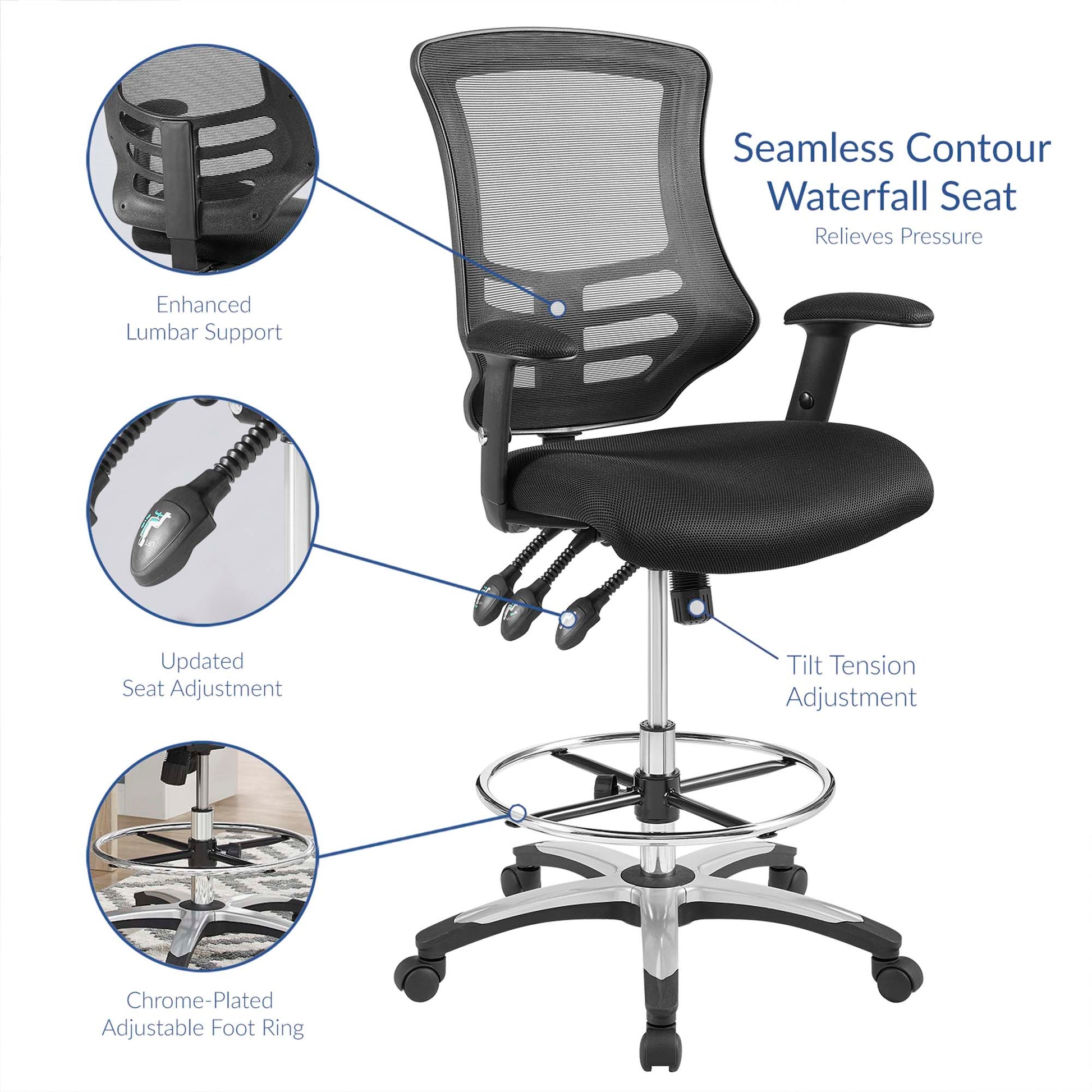 Cruise through daily tasks with the Calibrate Office Chair. This sturdy nylon frame office chair features height adjustable armrests, a breathable mesh back with passive lumbar support, dense foam padded waterfall seat covered in mesh, full 360-degree swivel, and five dual-wheel casters for natural movement over either carpeted or hardwood surfaces. Experience productivity without compromising on comfort with this user-friendly work companion.