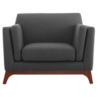 Distill organic mid-century charm with Chance Upholstered Fabric Armchair. Clean lines and flared arms add intrigue to the elegant silhouette, as the broad, oversized profile offers up a comfortable place to rest and relax. Finely upholstered in soft polyester fabric, Chance features plush, dense foam padding, removable cushions for easy cleaning with machine-washable cushion covers, a solid wood frame with tapered legs, and plastic non-marking foot caps. Update your living room, lounge area, apartment or small living space with this low profile contemporary armchair perfect for all casual seating needs. Chair Weight Capacity: 331 lbs.