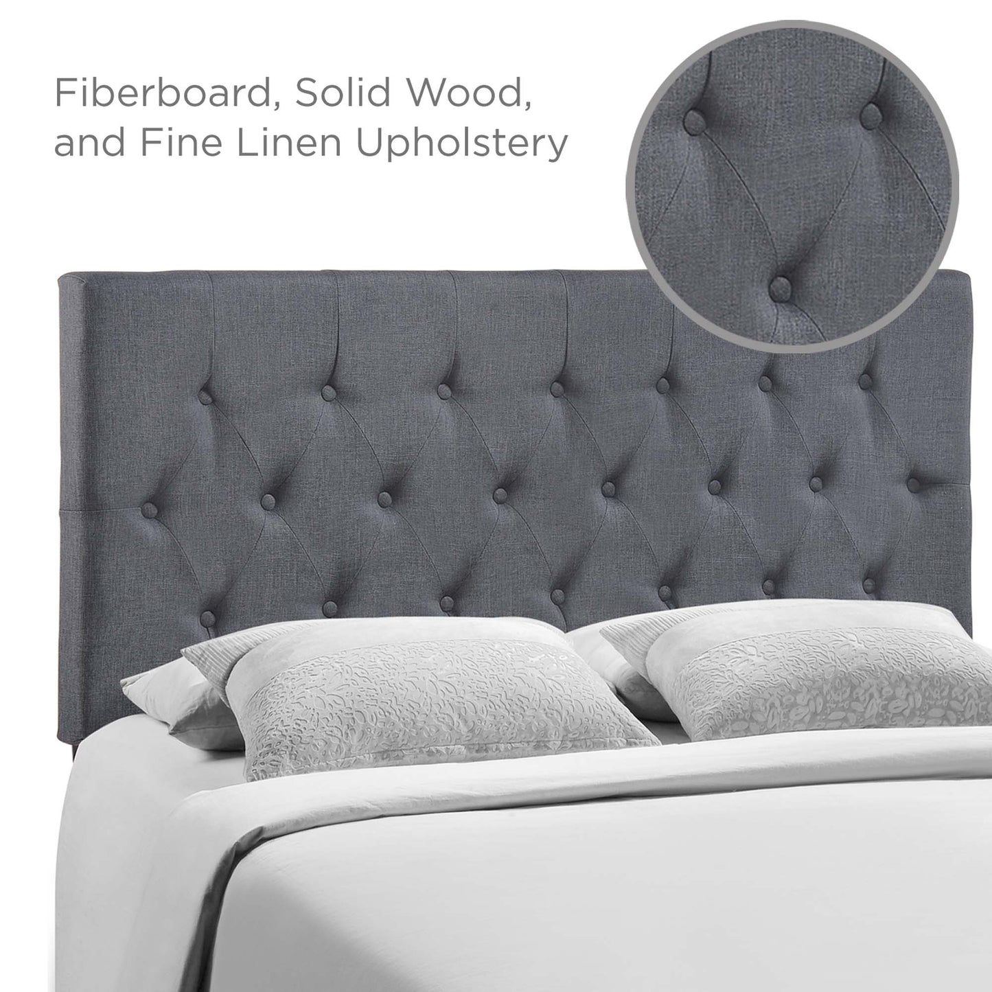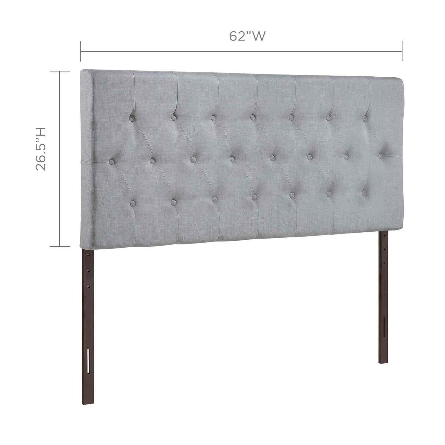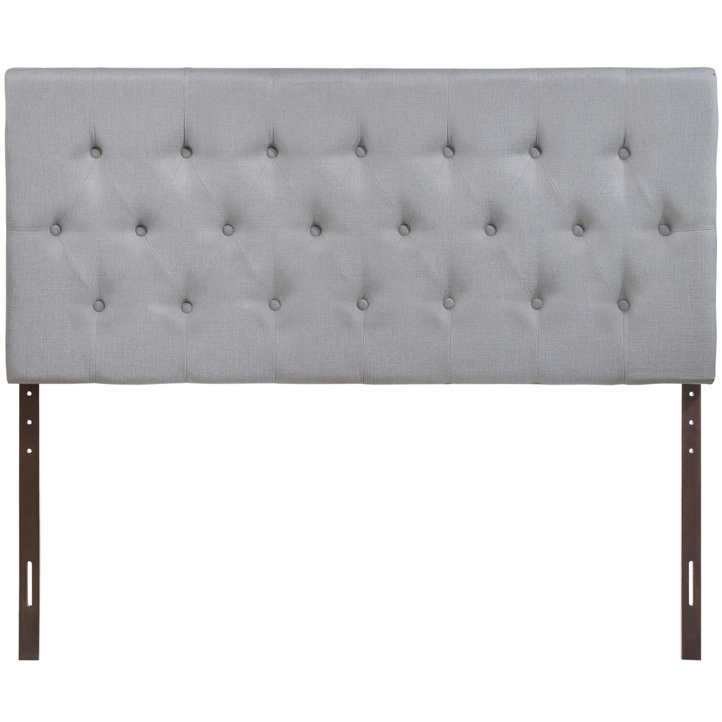 Deep tufted buttons patterned in a dazzling array adorn the Modway Clique Button Tufted Linen Fabric Upholstered Queen Headboard. Clique Queen Headboard adds depth and elegance to a décor built on an uncomplicated style of fine lines and carefully implemented design elements. Clique is made from fiberboard, solid wood, and soft linen fabric upholstery for a construction that is both lightweight and long-lasting. Introduce Clique headboard for queen beds to your contemporary bedroom for restful nights supported by a collaborative design.