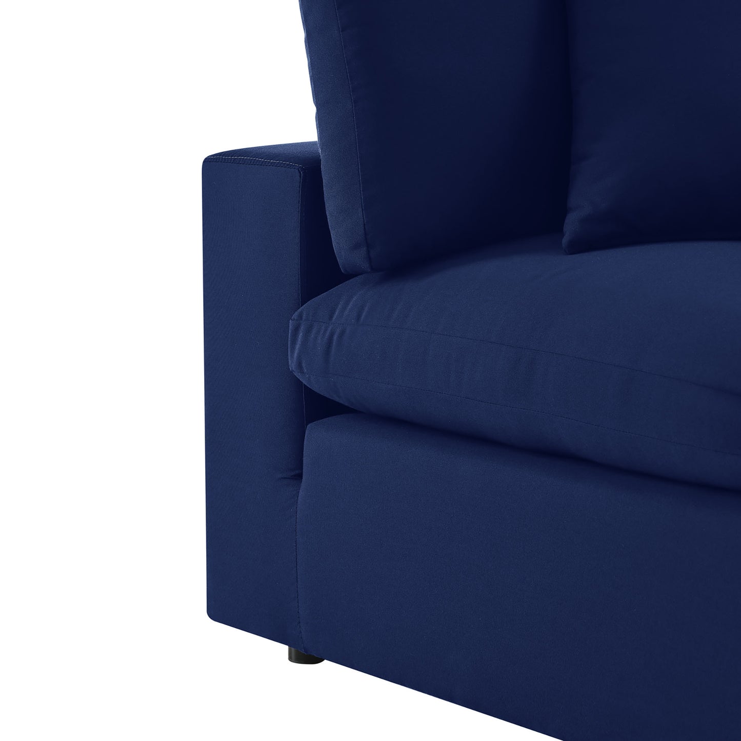 A haven for cozy relaxation right in your own backyard, Commix features plush comfort, a clean-lined design, and a spacious profile that makes an attractive statement on the porch, patio, or by the poolside. Made for sprawling out in the sun or curling up with a good book, this outdoor patio sectional sofa features generously padded cushions covered in water-repellent, UV-resistant Sunbrella® fabric covers making them ideal for your outdoor space. This outdoor sectional sofa features an all-weather construction with a powder-coated aluminum frame and non-marking foot caps to protect flooring surfaces. Beckoning guests to sit and stay a while, the Commix Outdoor Patio Collection is perfect for al fresco entertaining or lounging amidst warm weather. Set Includes: 2 Armless Chairs, 1 Ottoman, 2 Corner Chairs. Each Chair Weight Capacity: 300 lbs.