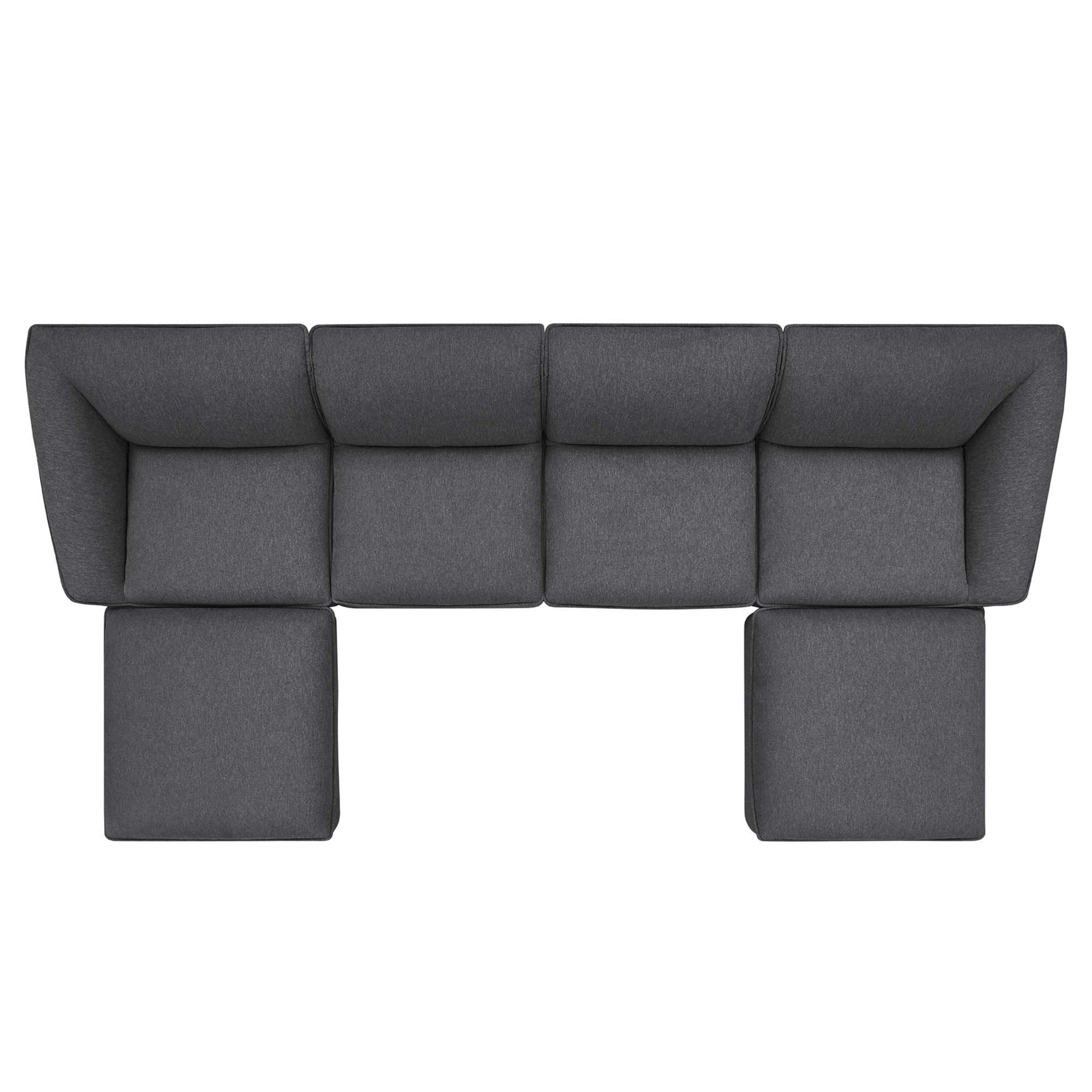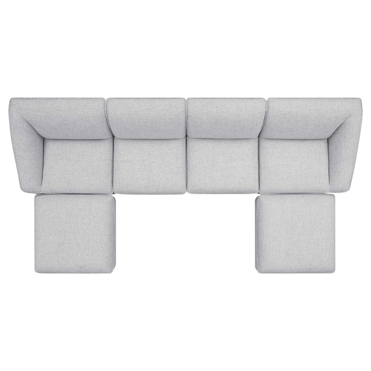 Indulge in cozy relaxation in the comfort of your own home with the Comprise Upholstered 6-Piece Living Room Set. A casual design accented with French piping details, this four-seater sofa and two ottoman set features dense foam padding, soft polyester upholstery and a pocket coil spring system to offer a premium seating experience. Solidly constructed with solid wood and plywood, this upholstered sofa rests atop sturdy rubberwood legs with secure connectors between modular pieces. Create a custom living room or lounge area with the Comprise Living Room Furniture Collection. Set Includes: 1 Left-Arm Chair, 1 Right-Arm Chair, 2 Armless Chairs, 2 Ottomans