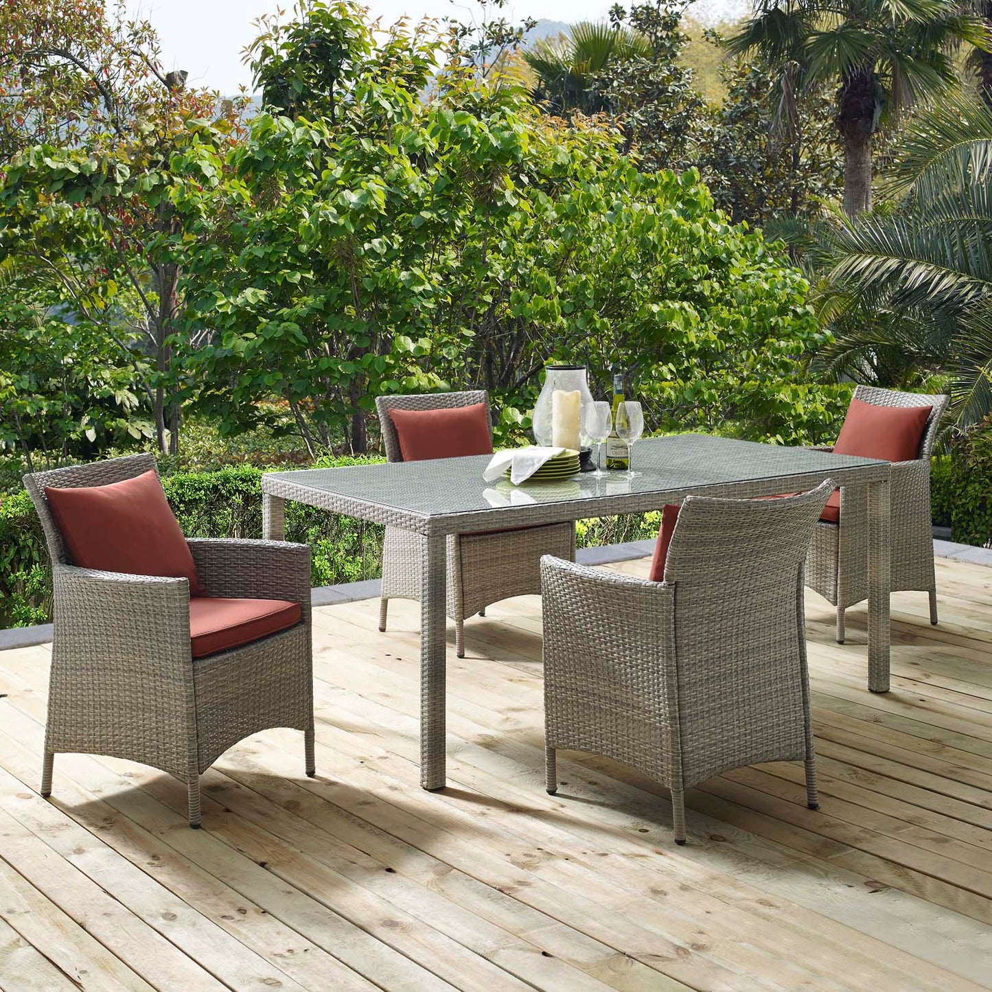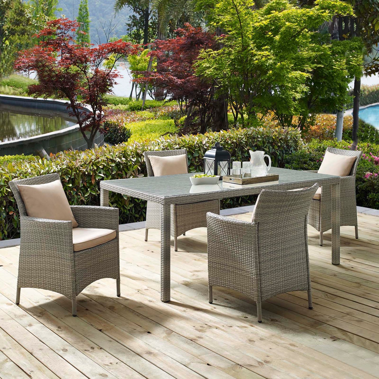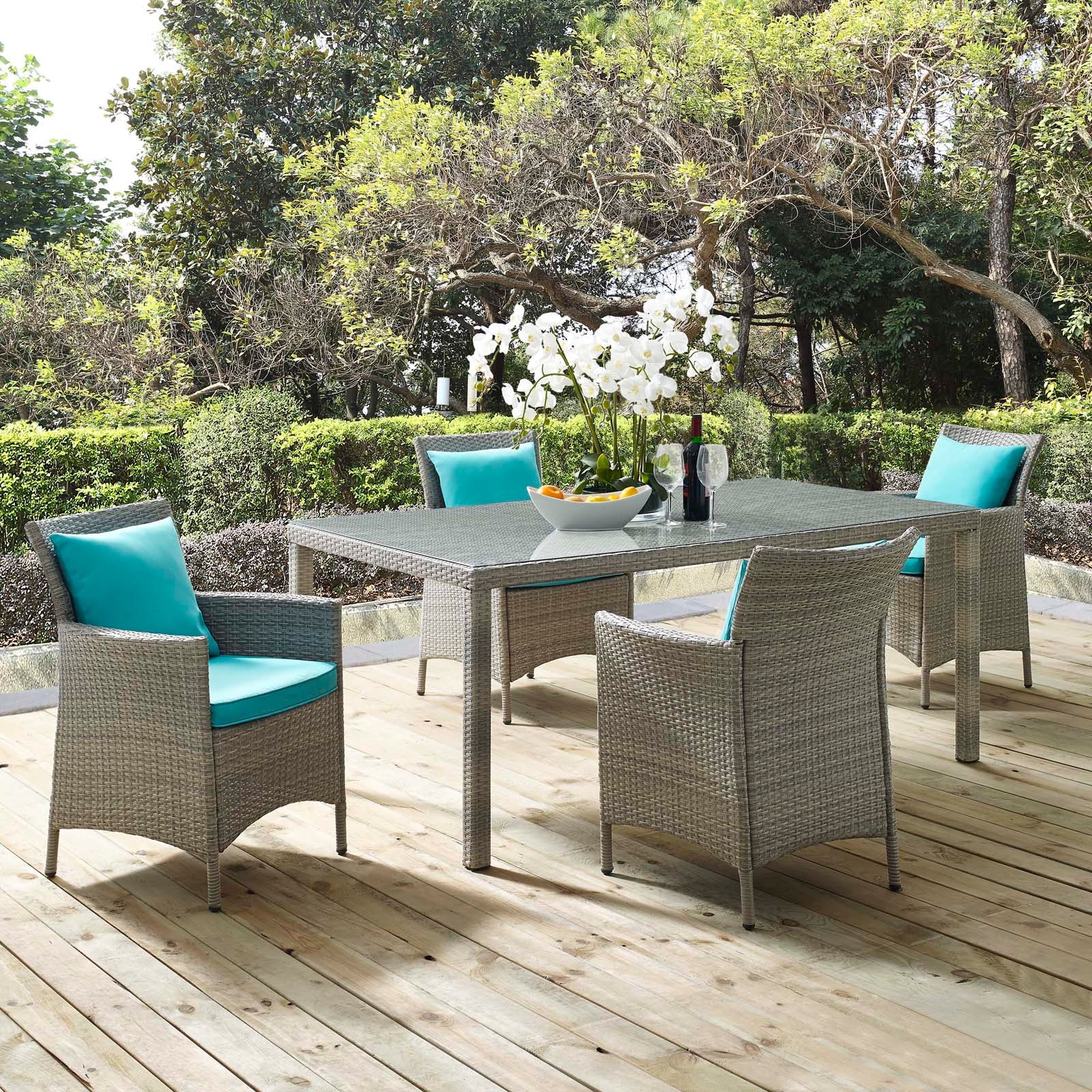 Conduit 5 Piece Outdoor Patio Wicker Rattan Dining Set