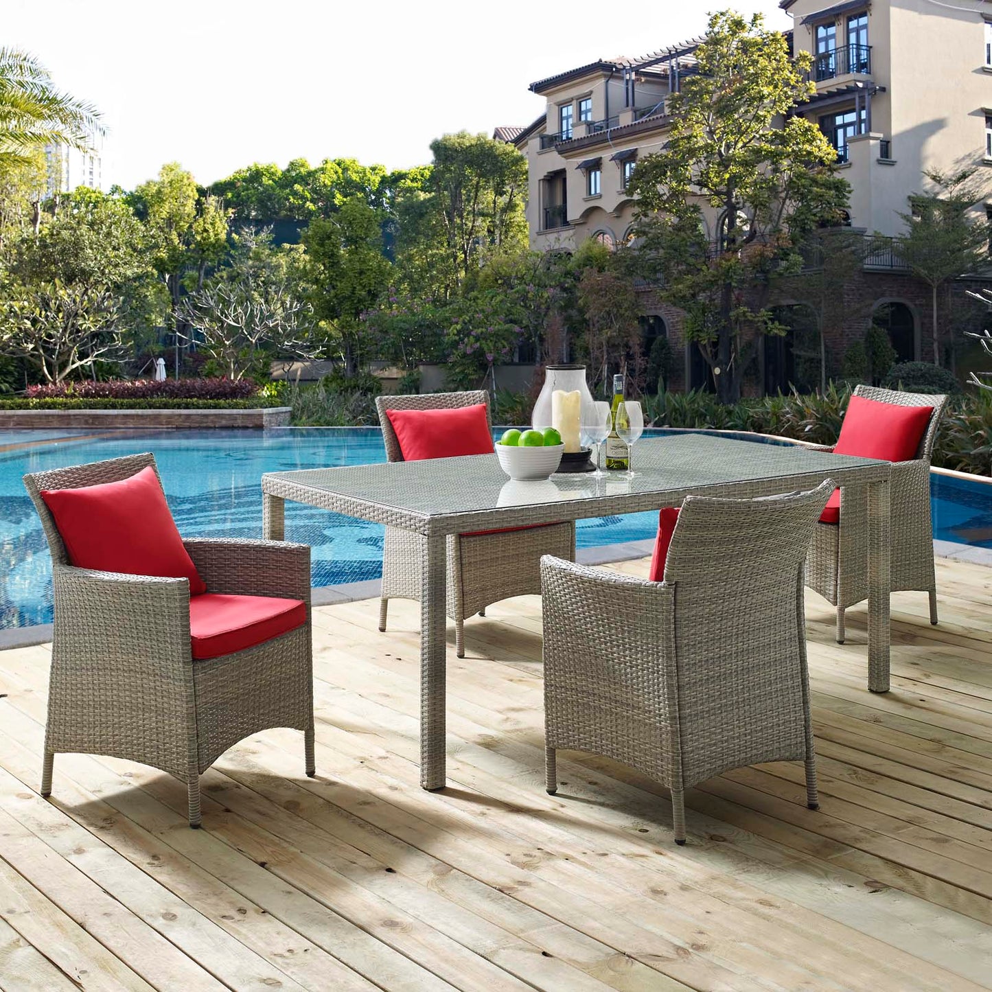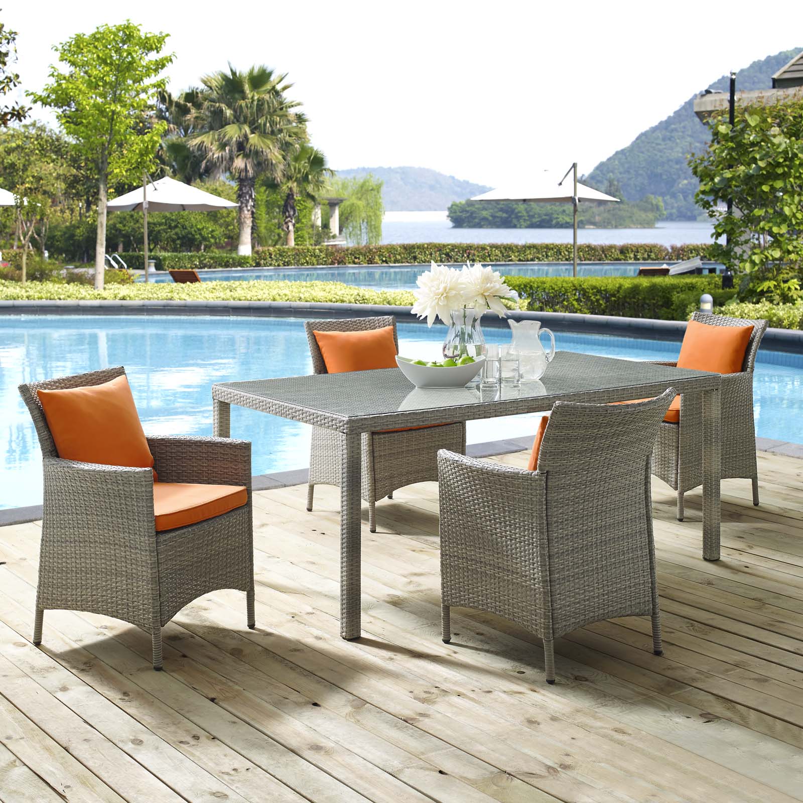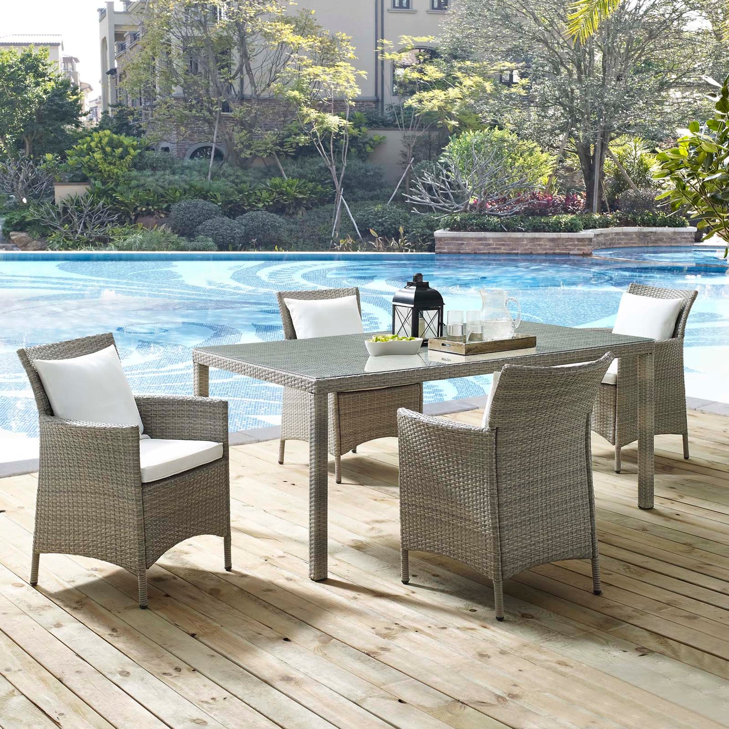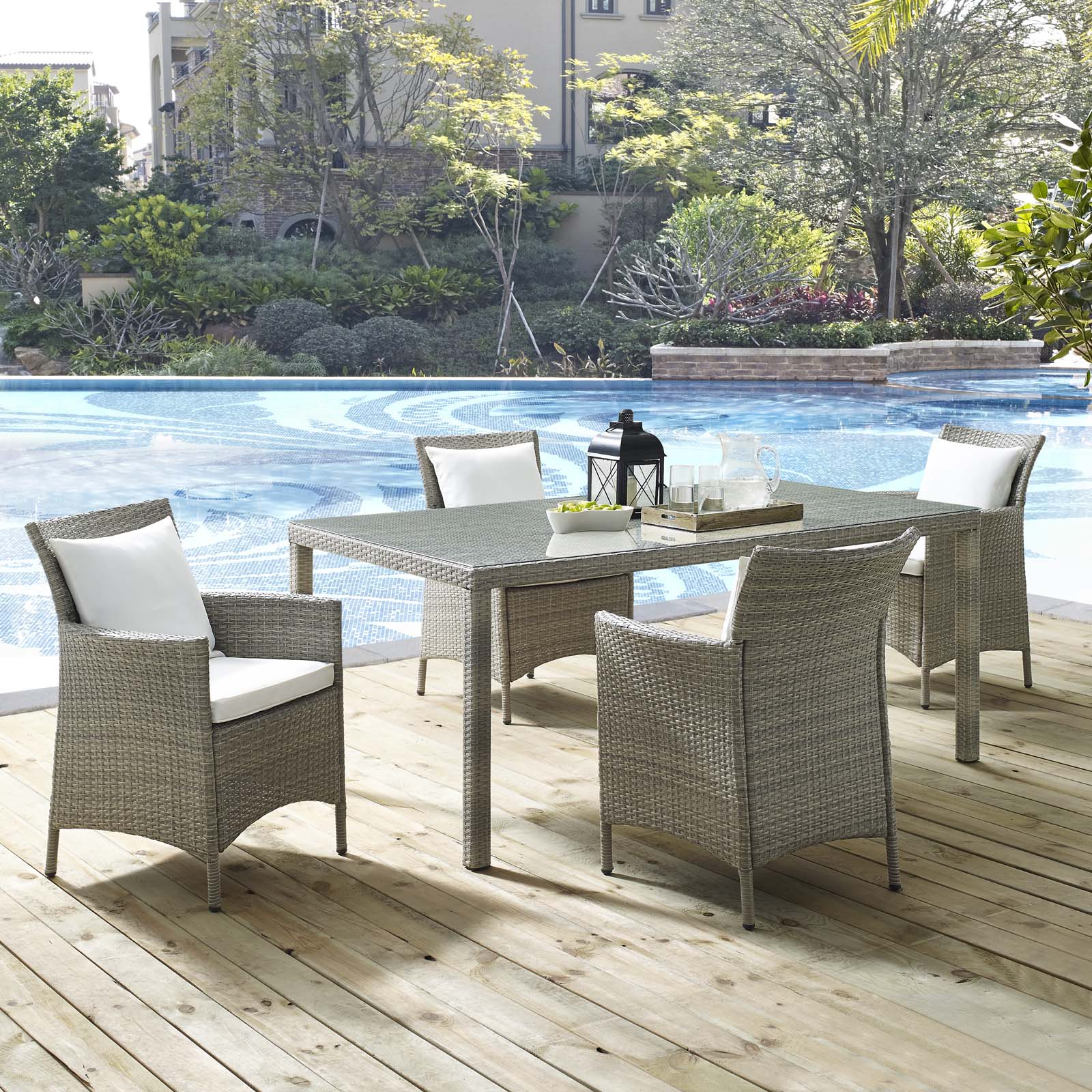 Conduit 5 Piece Outdoor Patio Wicker Rattan Dining Set