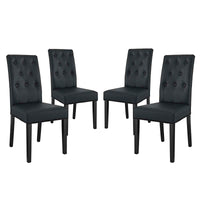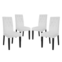Endow your dining room with vintage glamour style Confer Button Tufted Faux Leather Upholstered Dining Side Chair set. Confer Dining Accent Chair luxuriously combines dense foam padding with fine faux leather upholstery for a singular piece of comfortable elegance. Fashioned with eight tufted buttons and supported by a solidly constructed wood frame and stained hardwood legs, Confer Faux Leather Upholstered Dining Side Chair is a richly designed piece that blankets your dining experience in a layer of magnificence.