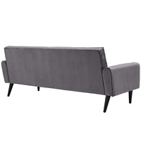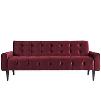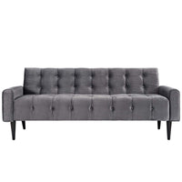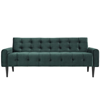 Transform your living room with the Delve Performance Velvet Sofa. Luxuriously tufted buttons adorn the soft, stain-resistant performance velvet polyester upholstery for an exquisite look of exceptional appeal. Featuring gently curved armrests and a fashionably chic shape, Delve comes densely padded in foam with solid wood legs. The perfect addition to the modern home or apartment, invigorate your home or apartment décor today with this exceptional piece. Matching armchair also available. Comes with non-marking foot glides.