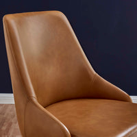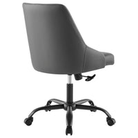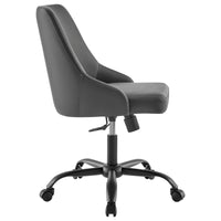 Bring modern style and sleek elegance to the home office with the Designate Vegan Leather Office Chair. Featuring clean lines and a tailored profile, this desk chair is padded in dense foam and upholstered in smooth vegan leather offering a supportive, comfortable place to sit during the workday. A black powder-coated base and five dual-wheeled nylon casters provide easy movement over hardwood or carpeted surfaces while the full 360-degree swivel, tilt tension control, and pneumatic height adjustment create a custom seating experience. Perfect for the modern home or office, this office chair is a desirable addition to any workspace. Chair Weight Capacity: 220 lbs.