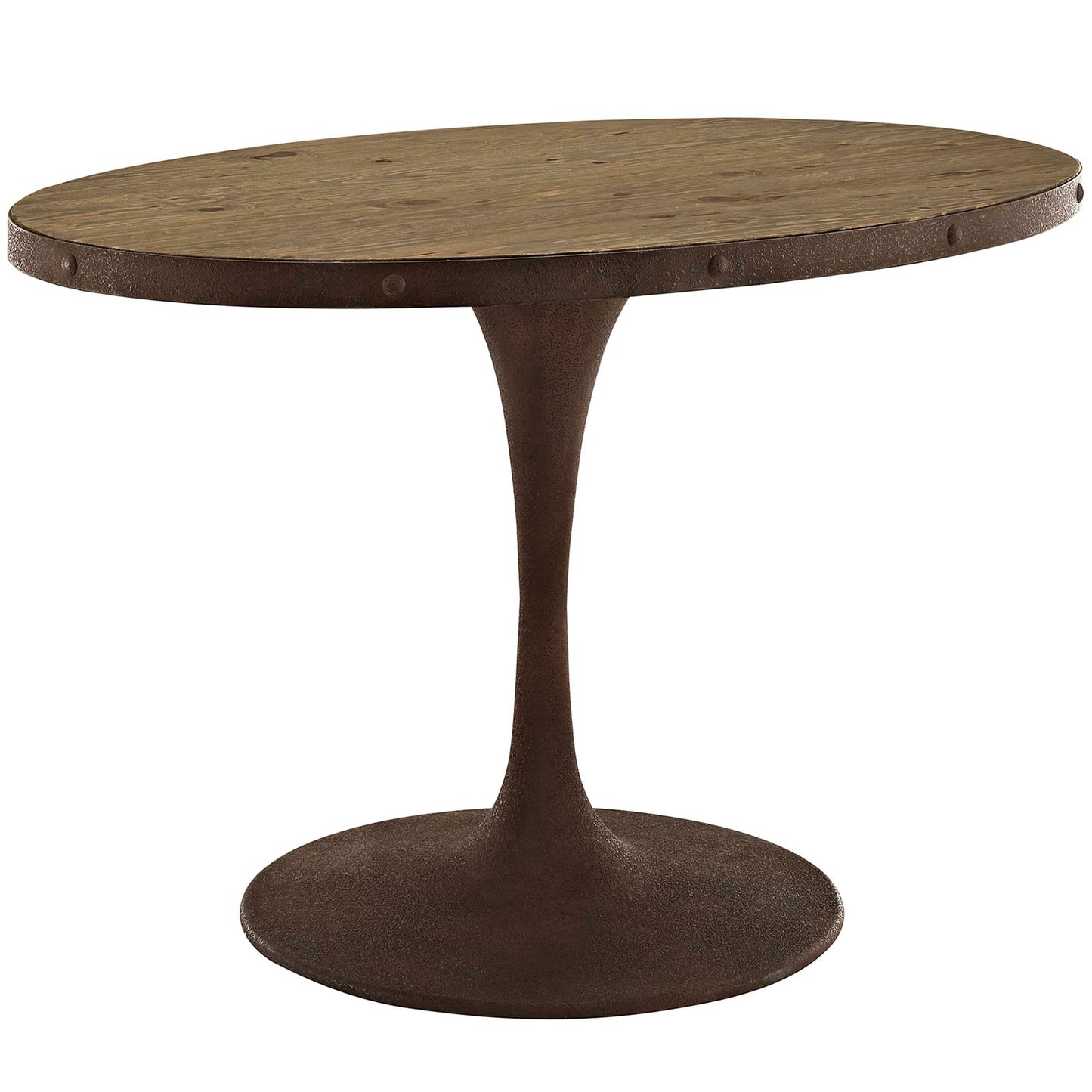 Deliberately implement down-to-earth aesthetics with the Drive industrial modern oval dining table. Fashioned on a cast iron pedestal base, the oval pine top is braced in a rim of iron to connote progress amidst rustic conditions. In contrast to the standard four-legged tables, the single stand variety has been gaining popularity over the past 60 years. Now with the resurgence of industrial modernism, the warehouse of yesteryear comes remodeled into its present stance as an artform.