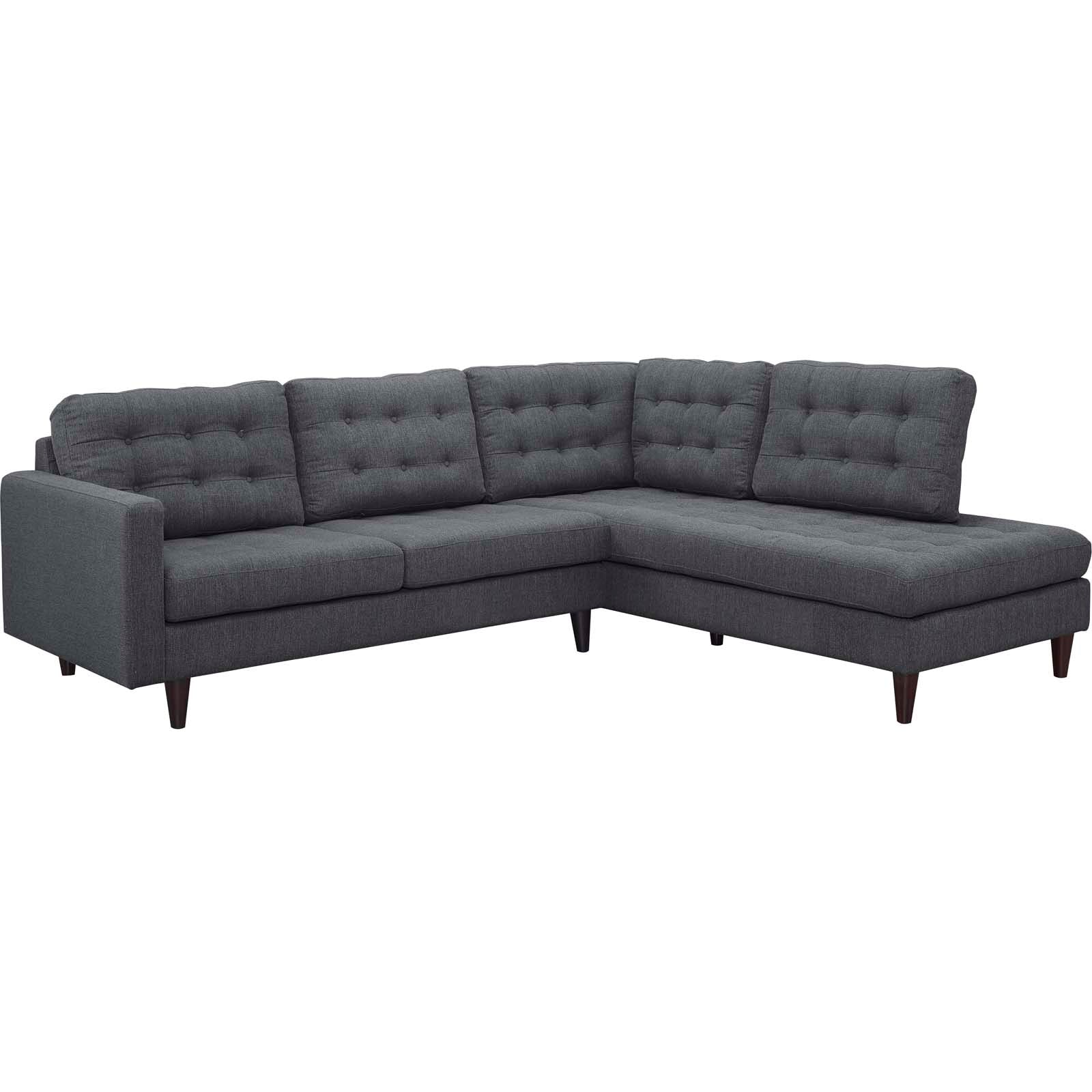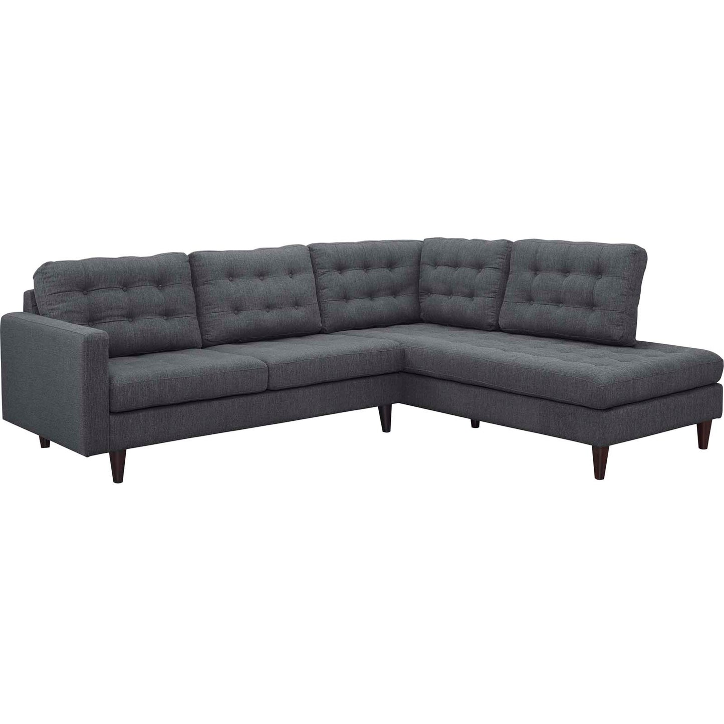 Empress 2 Piece Upholstered Fabric Right Facing Bumper Sectional