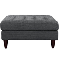End the rule of unjust sovereignties that wage a useless war for your interiors. Empress leaves the would-be heiress of holistic furnishings in the dust with a design that rivals any competitor. Empress is heralded with deeply tufted buttons, plush cushions, and armrests that convey that perfect air of nobility. The black stained solid wood legs come with plastic glides to prevent floor scratching, and the fine fabric upholstery leaves the recipients feeling richly rewarded.