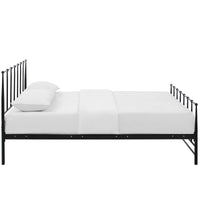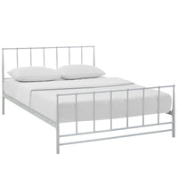Introduce a serene and relaxed look with the exceptionally built Estate Platform Bed. Gracefully designed with integrated round finials, comprehensive headboard to footboard construction, charming tapered frame made of coated steel, non-marking foot caps, and two reinforced center beams with supporting legs for maximal stability, Estate is a nostalgic piece built upon the standards of design excellence. Reminiscent of nostalgic cottages and country homes, Estate’s rail system eliminates the need for a box spring, and admirably supports mattress types such as memory foam, spring, latex, and hybrid. Weight capacity up to 1300 lbs. Mattress Not Included.