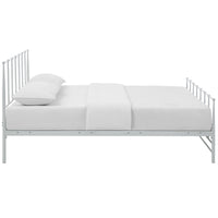 Introduce a serene and relaxed look with the exceptionally built Estate Platform Bed. Gracefully designed with integrated round finials, comprehensive headboard to footboard construction, charming tapered frame made of coated steel, non-marking foot caps, and a reinforced center beam with supporting legs for maximal stability, Estate is a nostalgic piece built upon the standards of design excellence. Reminiscent of nostalgic cottages and country homes, Estate’s rail system eliminates the need for a box spring, and admirably supports mattress types such as memory foam, spring, latex, and hybrid. Weight capacity up to 1300 lbs. Mattress Not Included.