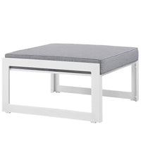 Nestled within close proximity to forests, rivers, valleys, and the Pacific Ocean rests the Fortuna Outdoor Patio Collection. Enjoy the good life with the versatile Fortuna Patio Ottoman that can also serve as a small patio bench in an engaging arrangement that makes it easy to enjoy conversations together with friends and family. Made of powder-coated aluminum with all-weather polyester cushions, Fortuna Outdoor Patio Ottoman appeals to the modern palate without overwhelming the senses. This installment of the Fortuna Outdoor Series is a patio ottoman perfect for contemporary patios, backyards, poolside, and other outdoor lounge areas.