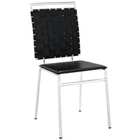 Take charge and speak up with a side dining chair with just the right amount of panache. Fuse features a compact back of durable PVC webbing, foam cushion and chrome plated tube base, to deliver an integrated design that doesn’t work too hard to be something its not. Perfect for dining rooms and kitchen or other meeting areas in need of a conversation-friendly seating arrangement.