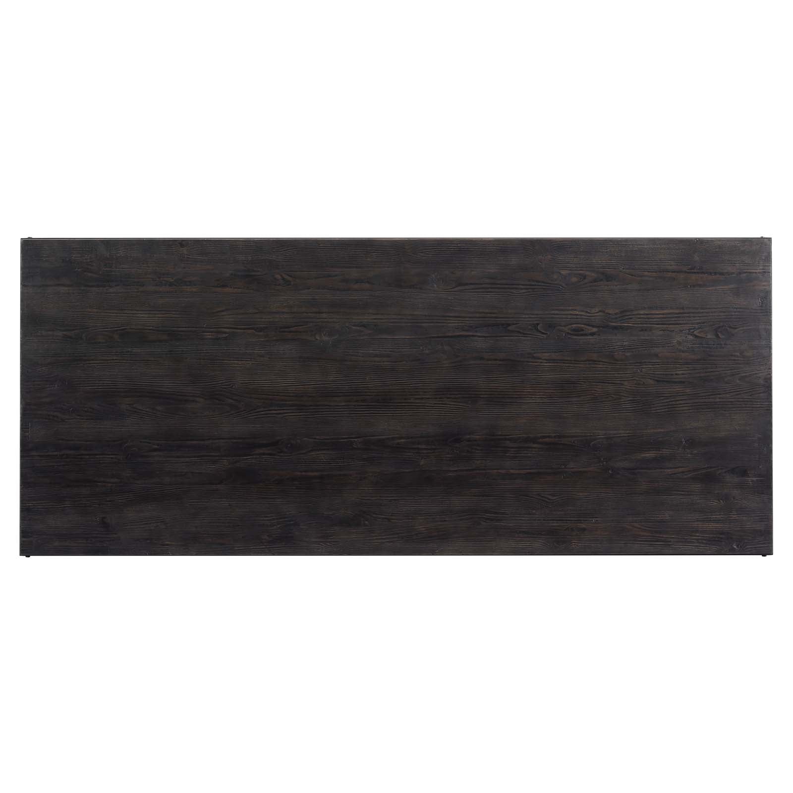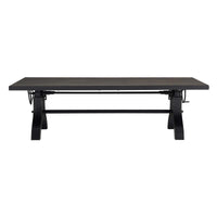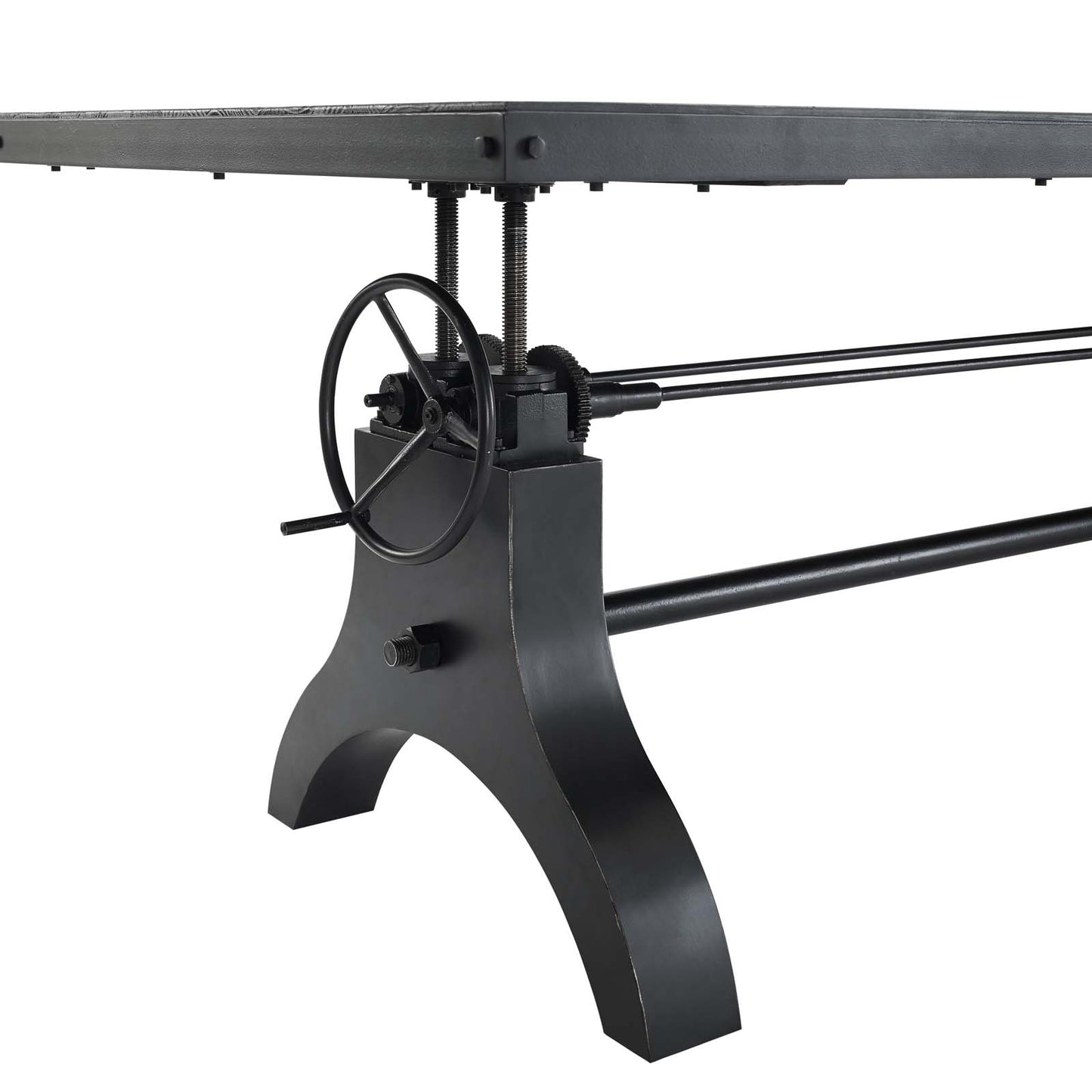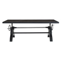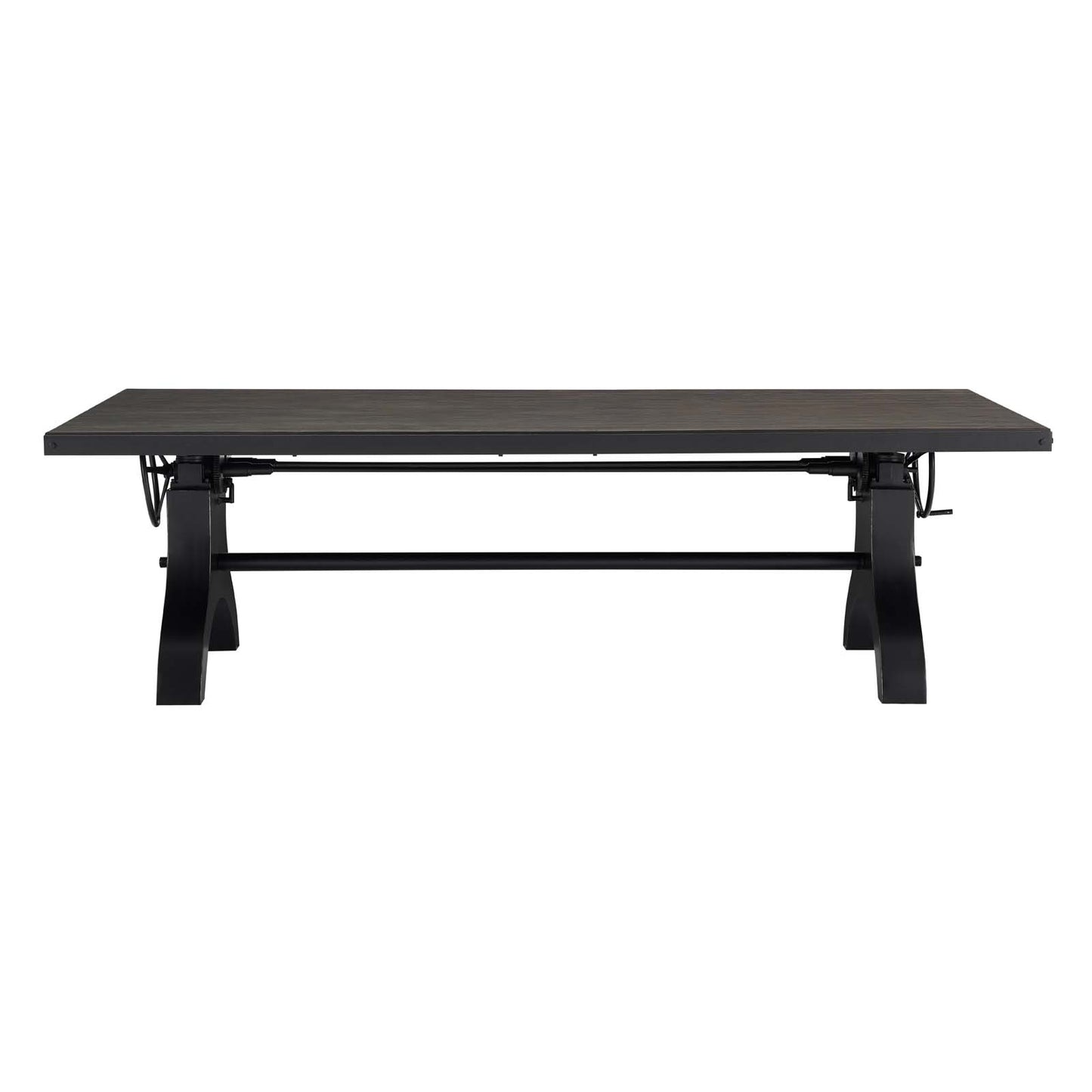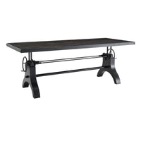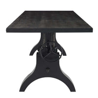 Rev up the energy in your conference room with the Genuine 96" long conference table. The rectangle design and industrial modern style create a dynamic centerpiece. A dining or conference table that elevates the look of your dining room or conference room, Genuine features a sturdy iron-plated metal wishbone leg base with an eye-catching crank that adjusts the table height from 30" to 42". Complete with a solid old pine wood top and black lacquer finish, Genuine ushers the feel of the industrial era straight to your home or office. Seating up to eight, Genuine works well coupled with office chairs, drafting stools, dining chairs, and more. Able to be positioned at dining, counter and bar height, welcome an 8ft long rustic vintage crank conference table that will draw admiration from guests. Table weight capacity: 441 lbs.