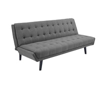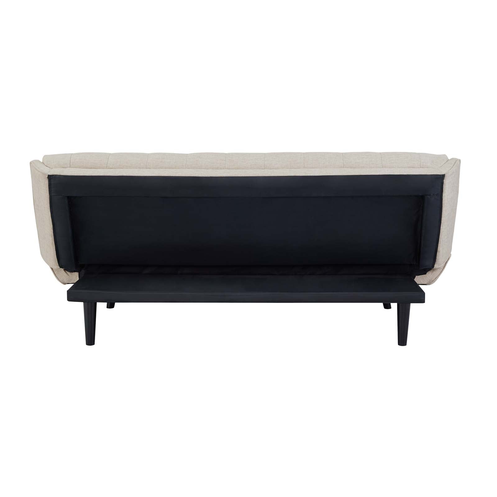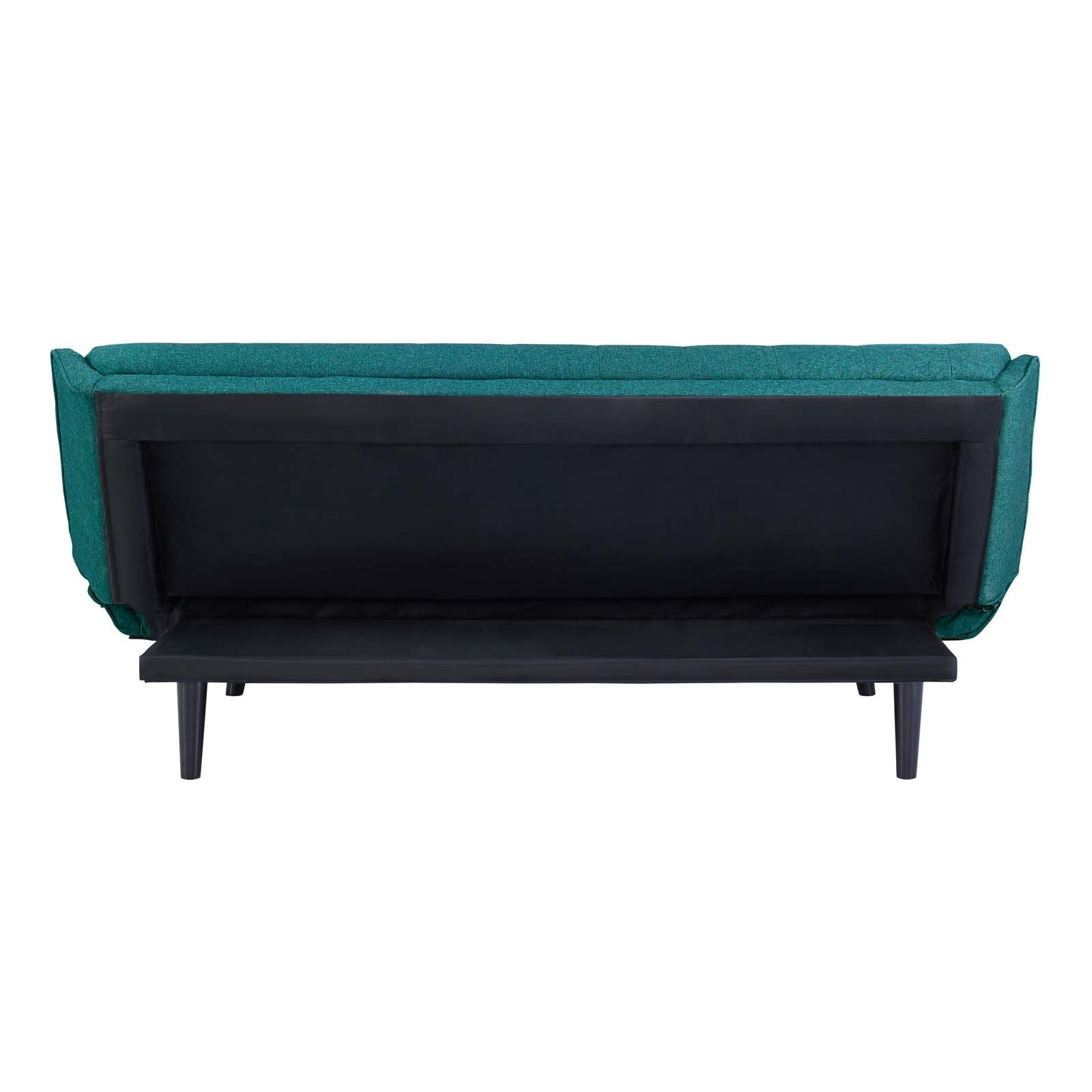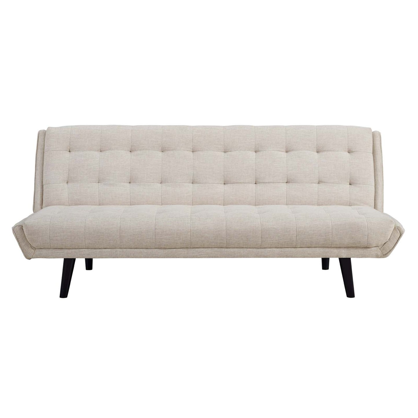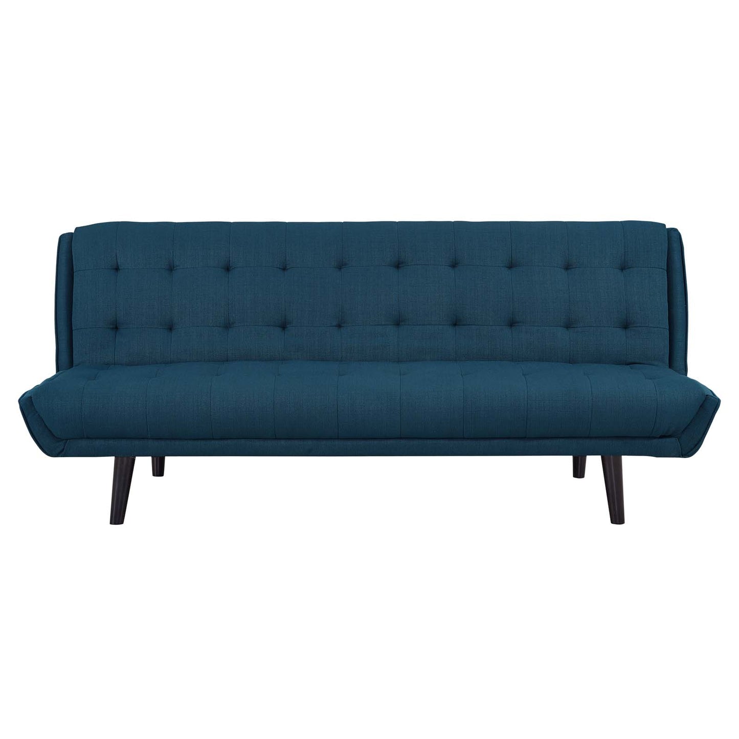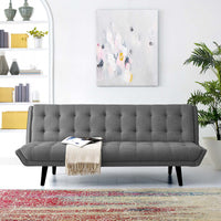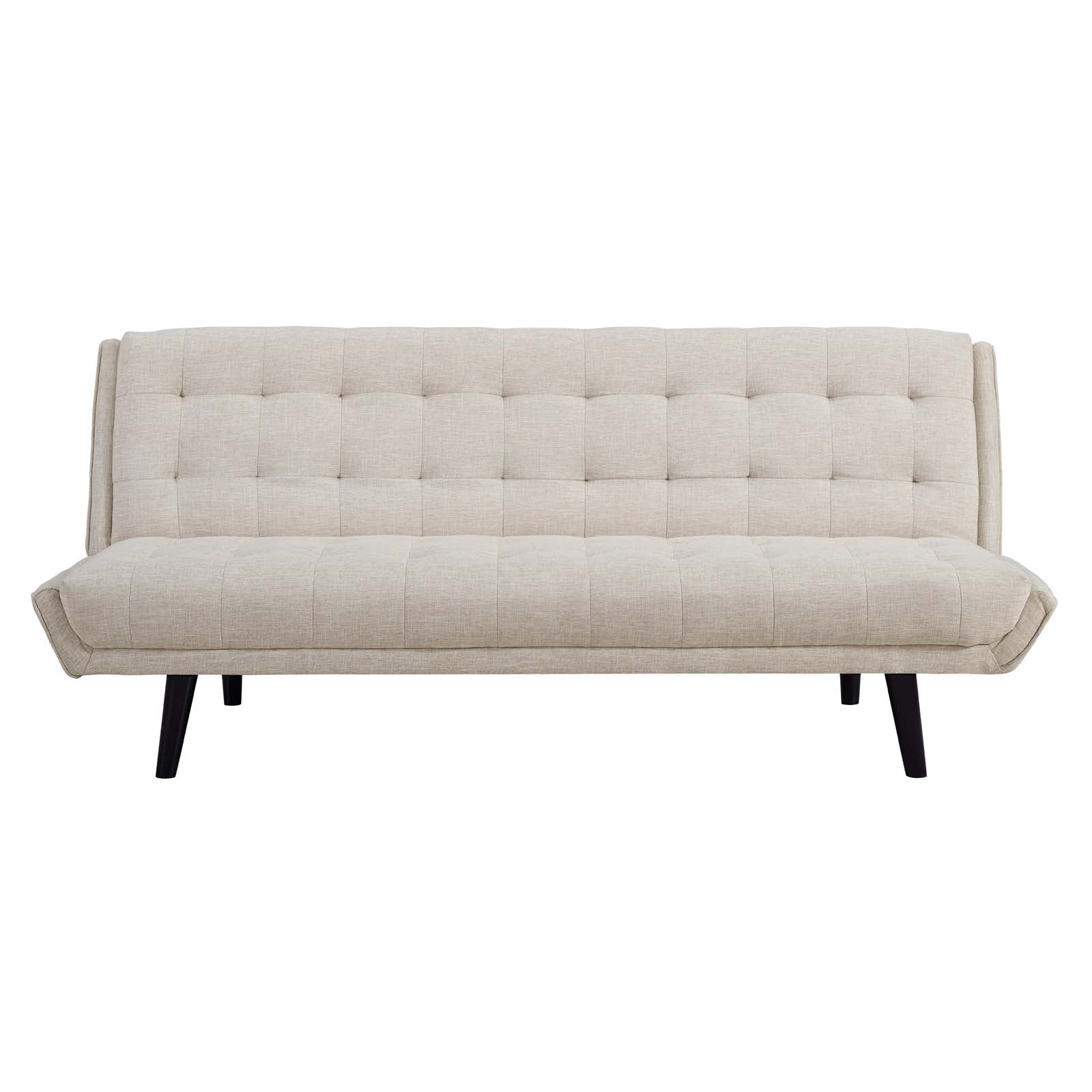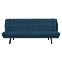 Create a favorite lounge spot in your home or apartment with the Glance Convertible Sofa Bed. Blending retro style with contemporary modern form, Glance offers mid-century charm with its timeless tufted seat, flared silhouette, splayed black wood legs with foot caps, and soft polyester fabric upholstery. Turn any space into a cozy spot for rest and relaxation by simply reclining the back of the sofa for easy conversion into a bed for overnight guests. Dense foam padded comfort and a spacious seat make this futon a welcome addition in the living room, family room, den, or recreation area. Weight Capacity: 287 lbs.