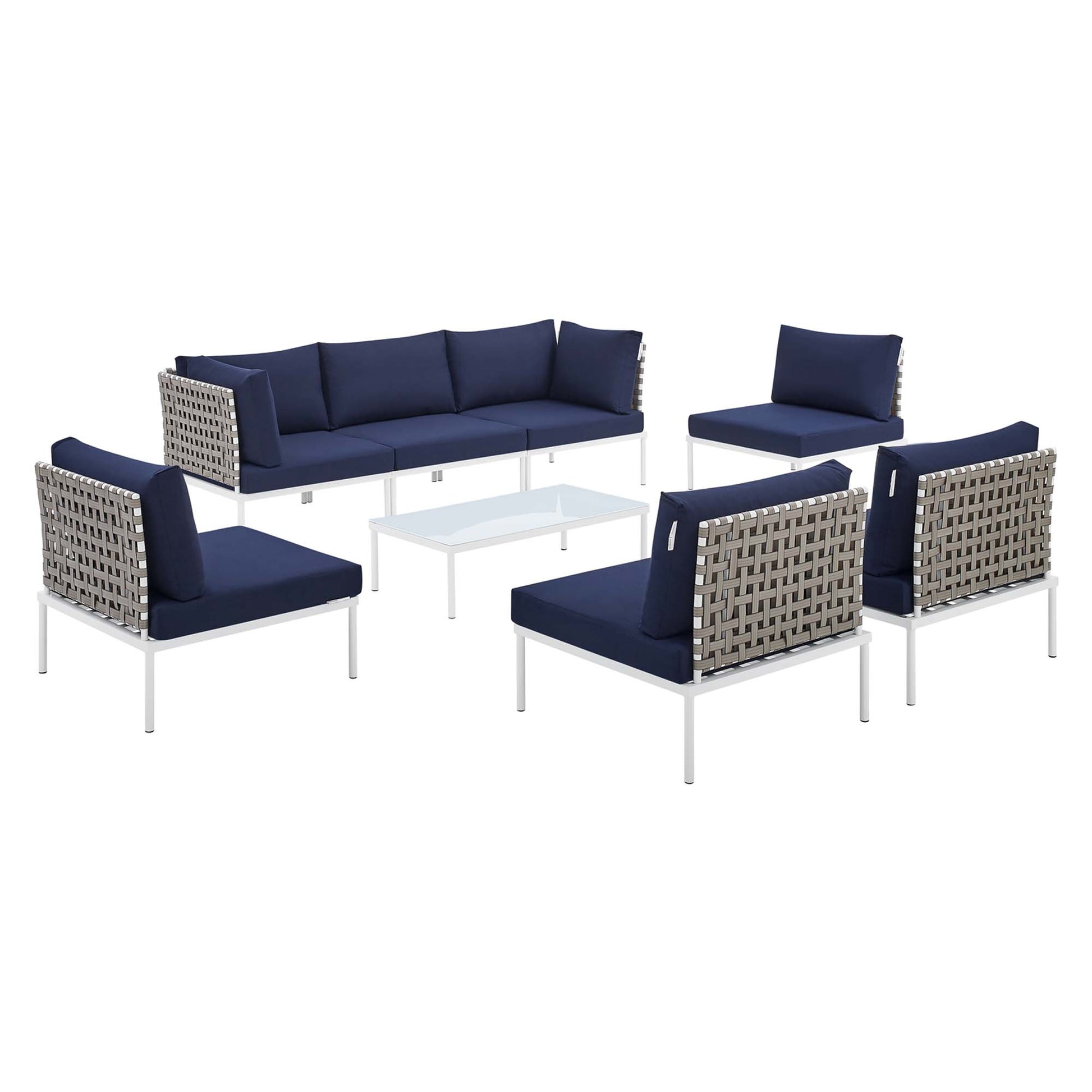 Harmony 8-Piece Sunbrella® Basket Weave Outdoor Patio Aluminum Sectional Sofa Set
