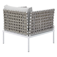 Engage life with Harmony Outdoor Patio Armchair. Enjoy casual conversation under the open sky with an all-weather waterproof outdoor chair from a versatile furniture set that delivers an exceptional outdoor porch, patio, balcony or garden experience. An exceptional modern outdoor furniture set that exceeds expectations, Harmony Patio Armchair comes with synthetic rattan seat back weave, square powder coated aluminum bases, Sunbrella® cushions, and non-marking foot caps. An outside chair that arranges according to the spontaneous needs of your guests, set your sights on open and inspired moments with the Harmony Outdoor Patio Collection.