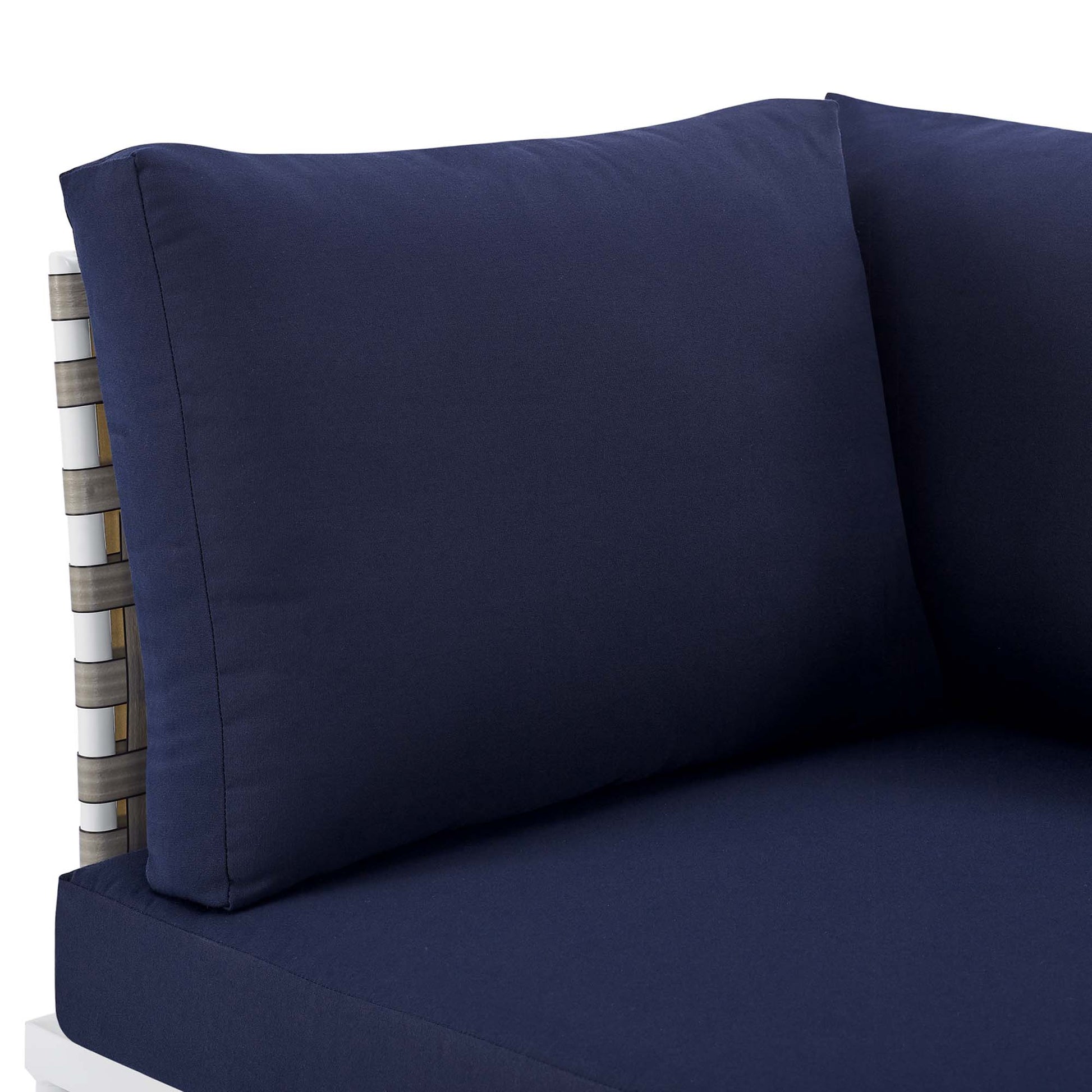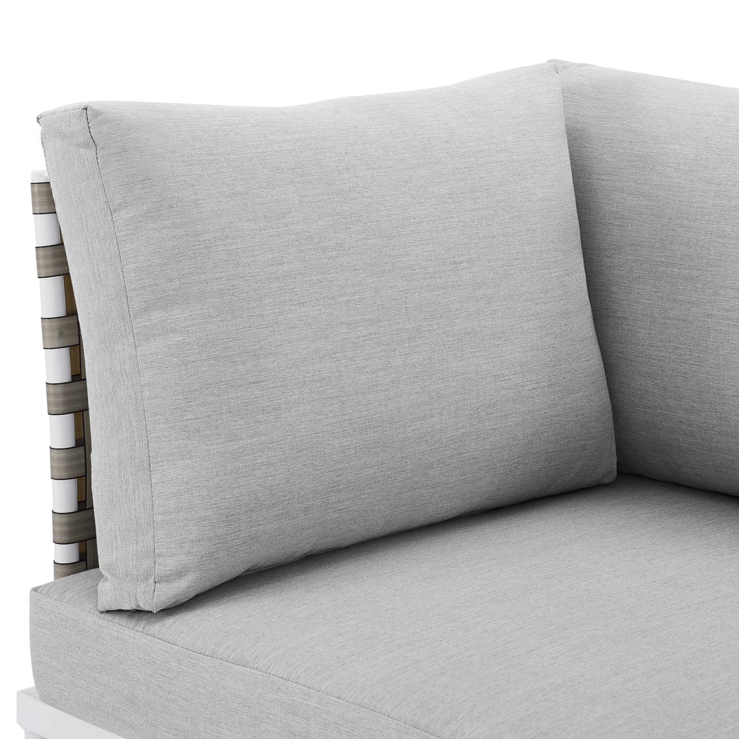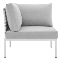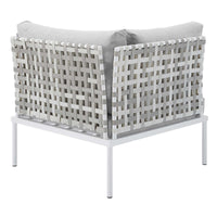 Engage life with Harmony Outdoor Patio Corner Chair. Enjoy casual conversation under the open sky with an all-weather waterproof outdoor sofa chair from a versatile furniture set that delivers an exceptional outdoor porch, patio, balcony or garden experience. An exceptional modern outdoor furniture set that exceeds expectations, Harmony Patio Corner Chair comes with synthetic rattan seat back weave, square powder coated aluminum bases, Sunbrella® cushions, and non-marking foot caps. An outside sectional corner chair that arranges according to the spontaneous needs of your guests, set your sights on open and inspired moments with the Harmony Outdoor Patio Collection.