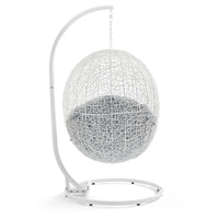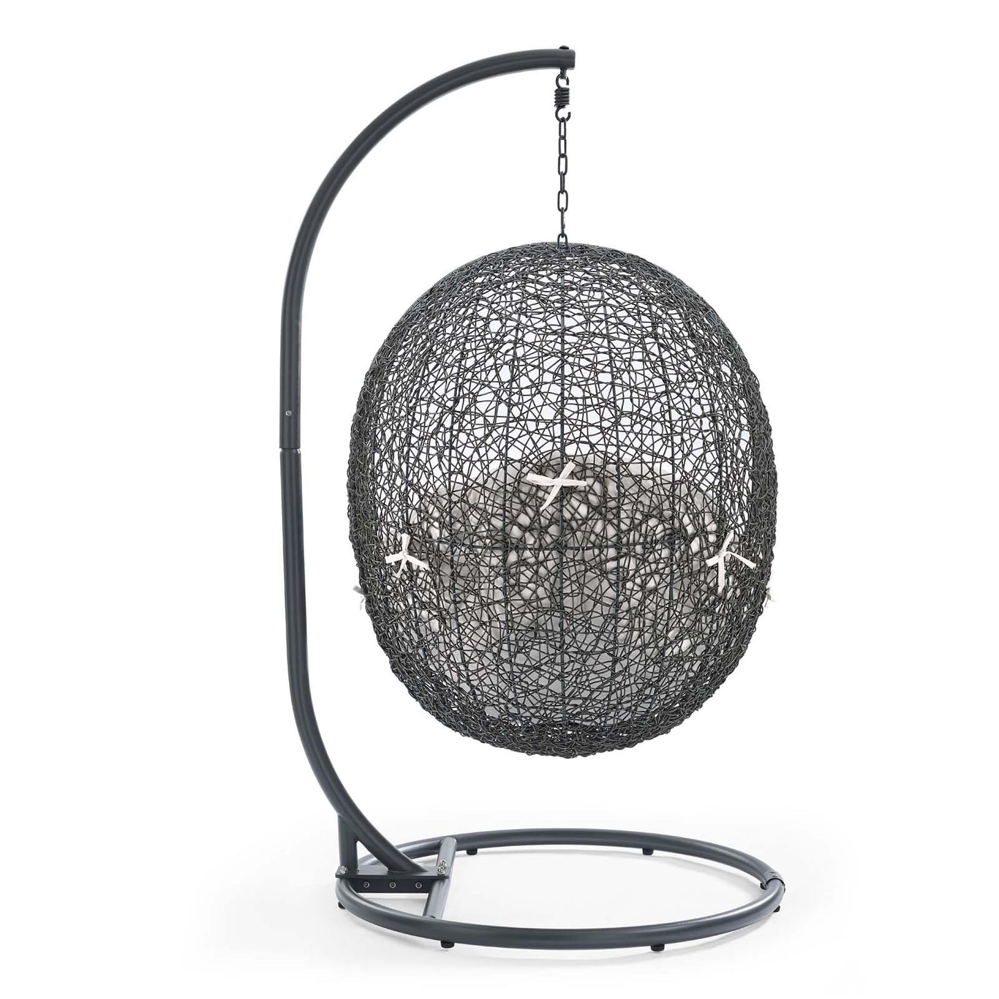 Escape to an exotic island of serenity with the Hide Swing Chair. Made with a luxurious synthetic rattan weave and plush all-weather Sunbrella® fabric cushion, Hides make it easy to immerse yourself in a good book. Hide comes with a sturdy powder-coated steel frame and hanging chain apparatus that works well to enliven your patio, backyard, porch, or poolside décor. Stand-alone swing hammocks are also popularly used in indoor lounge, living, or bedroom spaces. Hide is weather and UV resistant.