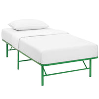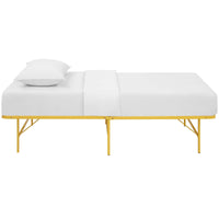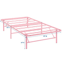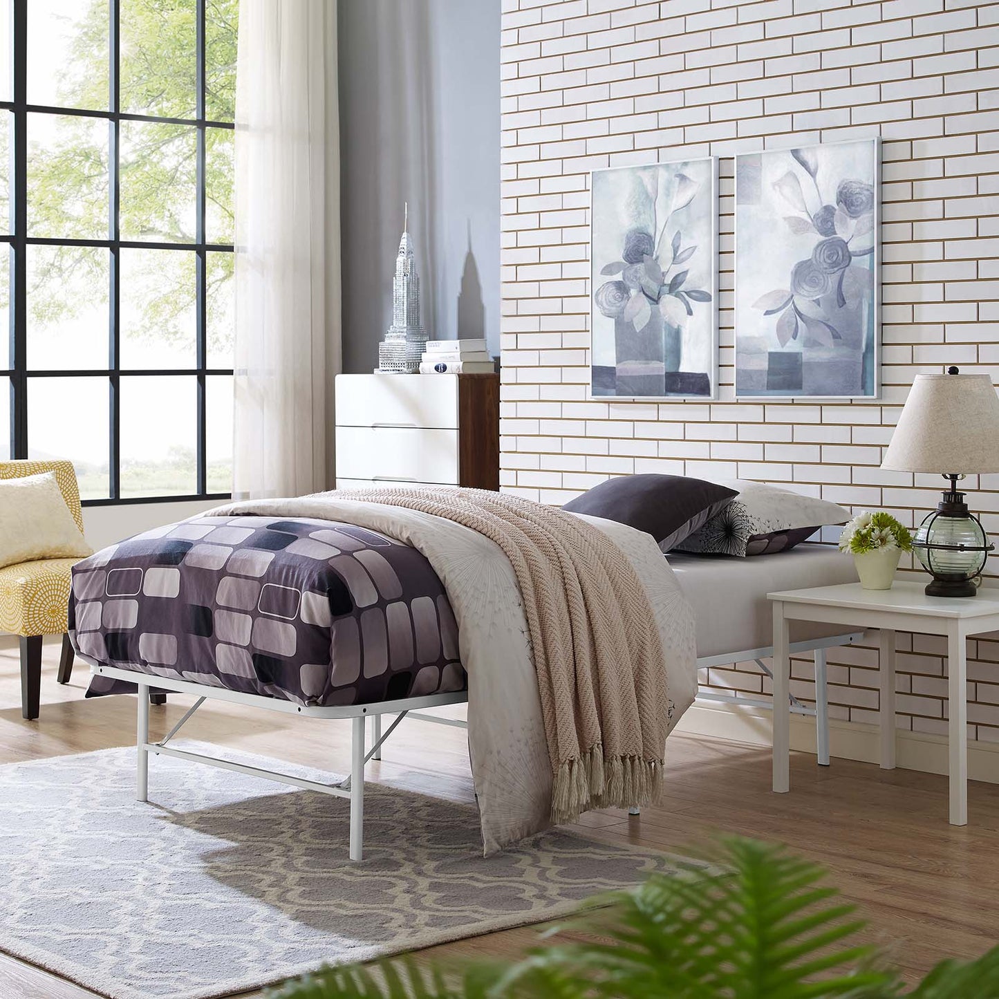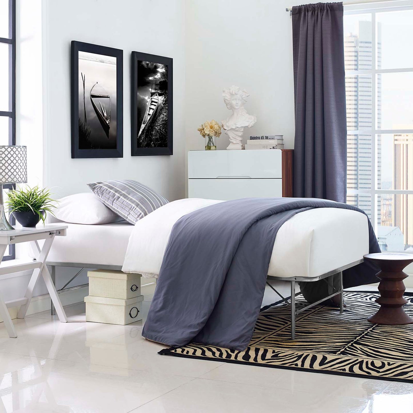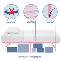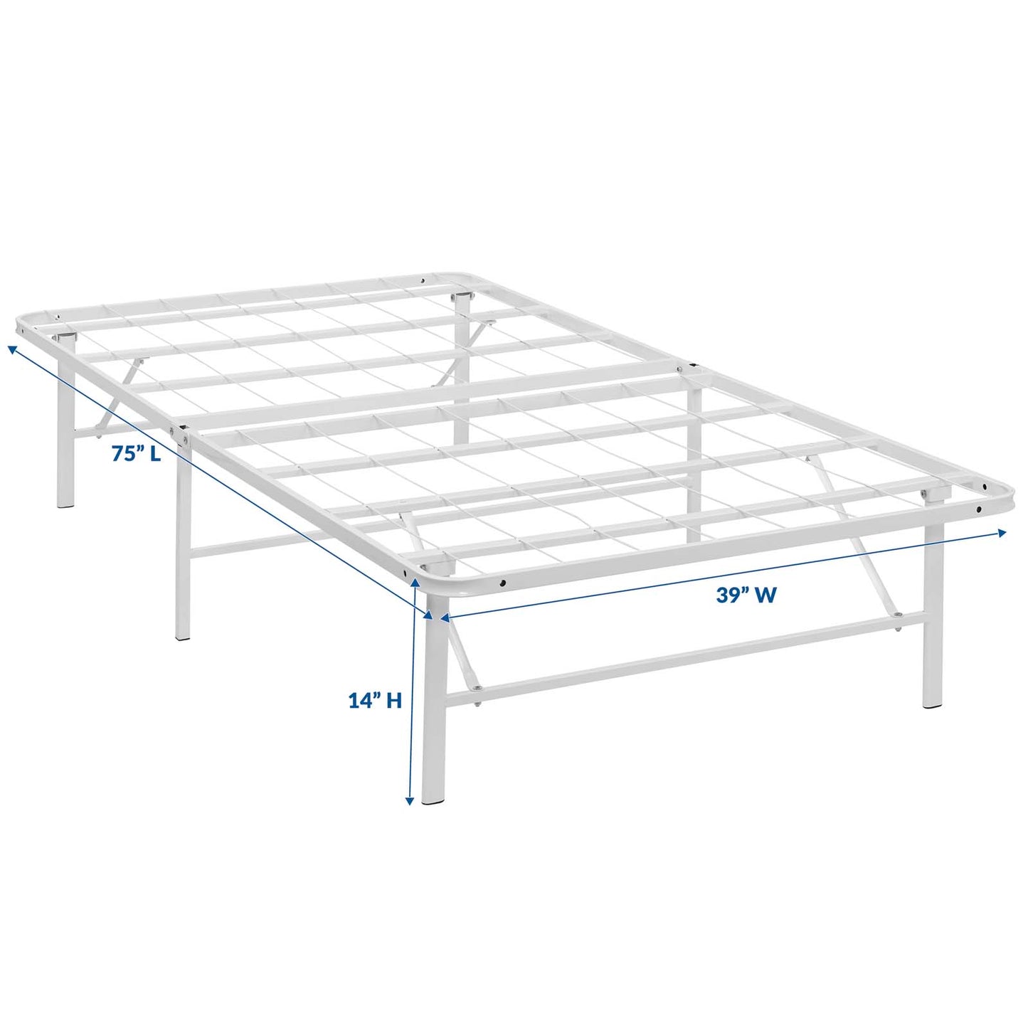 Sleep better with the Horizon Metal Bed Frame. Horizon is made with a reinforced stainless steel metal base for long-term comfort and uses with a generous 14 inches of space underneath to store hobby collections or seasonable clothing bins. Horizon comfortably supports up to 1300 lbs, easily folds away when not in use, and eliminates the need for a box spring with its heavy duty platform frame construction. Complete with non-marking foot caps to keep your carpets and floor safe, Horizon is a low profile modern bed frame that supports the standard mattress types on the market: memory foam, spring, latex or hybrids. Available in twin, full, or queen, Horizon reduces annoying squeaks and unpleasant bending or buckling, while transforming your home décor with a selection of stylish color options. Designed to provide lasting support for years to come, Horizon prevents saggy mattresses and increases the mattress lifespan while delivering a better-made bed frame solution for your home. No tools required. Mattress not included.