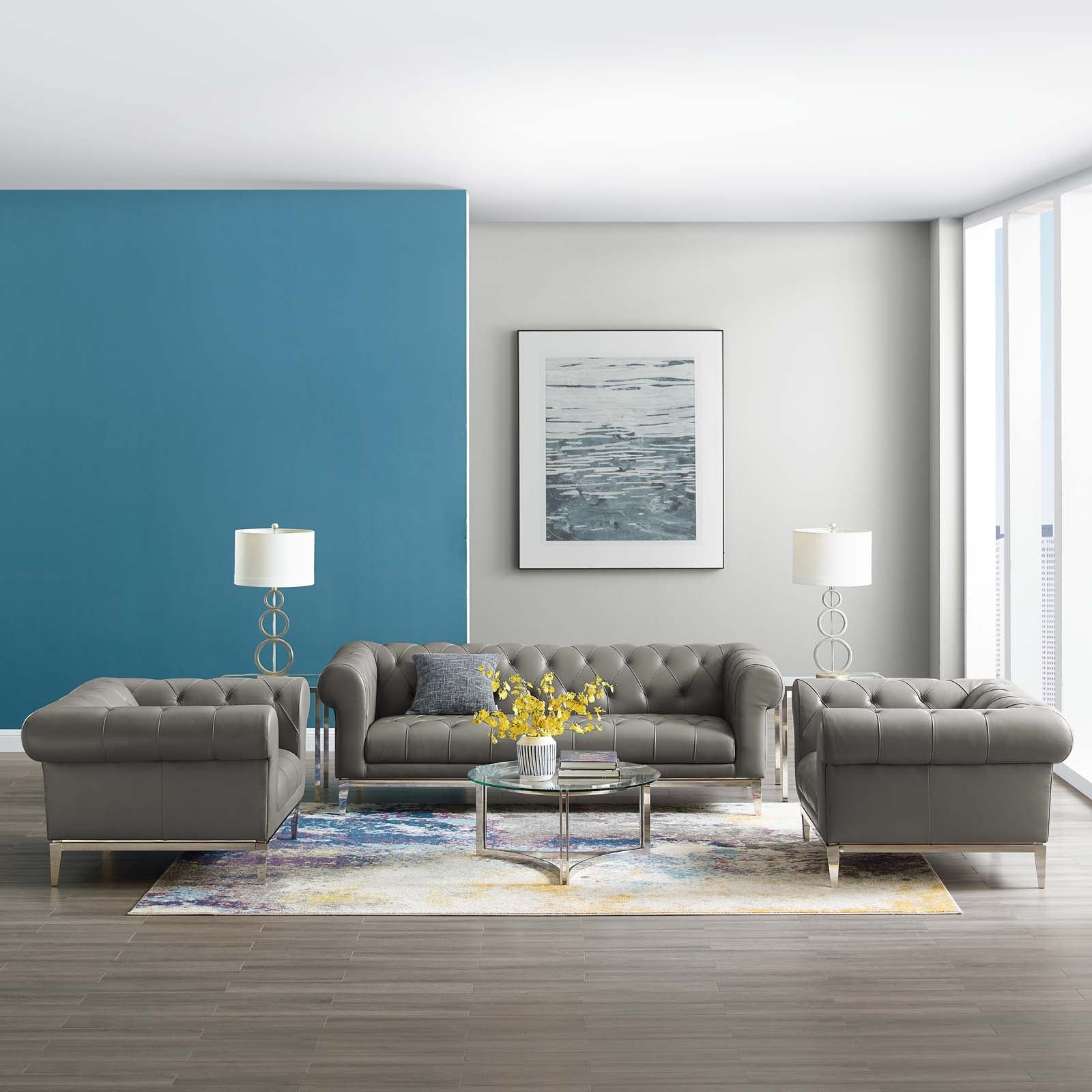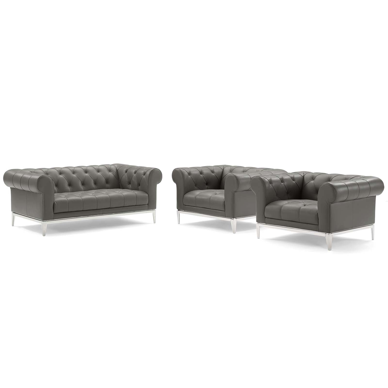 Idyll Tufted Upholstered Leather 3 Piece Set