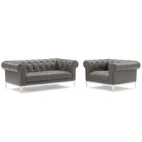 Idyll Tufted Upholstered Leather Loveseat and Armchair