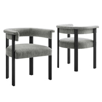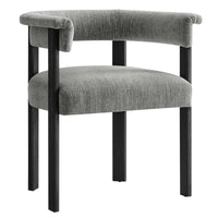 Feel the exquisite combination of modern chic and ultimate comfort with the Imogen Fabric Dining Chair Set of 2. These contemporary dining chairs feature a unique barrel back silhouette that cradles you in luxury with its curved backrest and open design, offering both support and style. The foundation of each dining room armchair is built on sturdy wood legs, for durability and strength to accompany its aesthetic appeal. The seats and backrests, constructed from high-quality wood, are enveloped in a dense layer of foam and fabric upholstery, creating an inviting look that beckons you to sit and relax well after you've finished eating. The fixed seat and cushion design provide a seamless, clean look that complements any dining table with grace. These curved back dining chairs are equipped with non-marking plastic foot pins, protecting your flooring. Perfectly suited as an accent chair or part of your kitchen & dining room ensemble, this set of two rounded back dining chairs seamlessly integrates with a variety of decor themes, from modern farmhouse to contemporary and minimalist aesthetics. Easy to assemble and designed with the modern home in mind, the Imogen barrel chair set is not only a practical addition to your home but also a reflection of sophisticated taste. Dining Side Chair Weight Capacity: 331 lbs