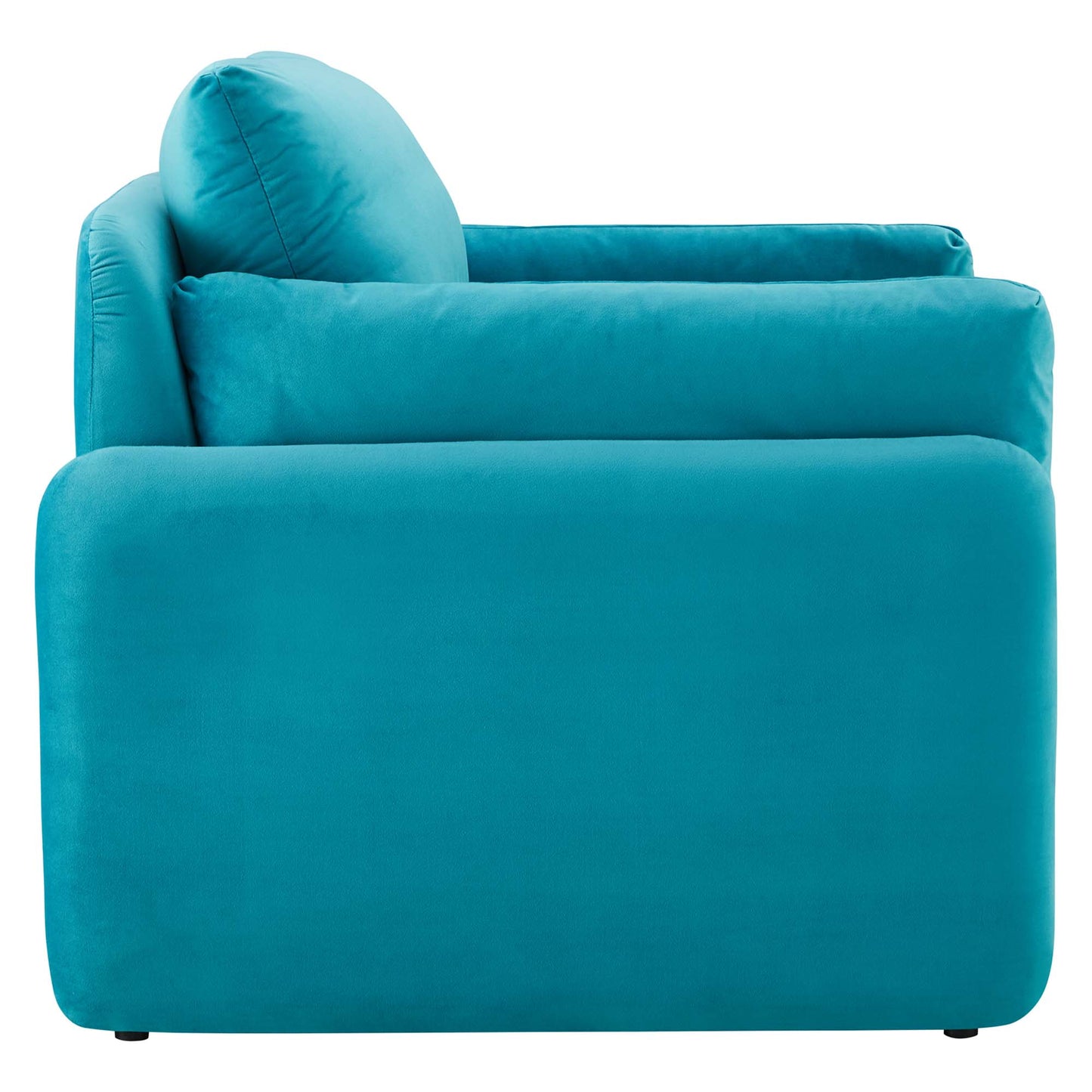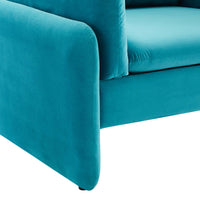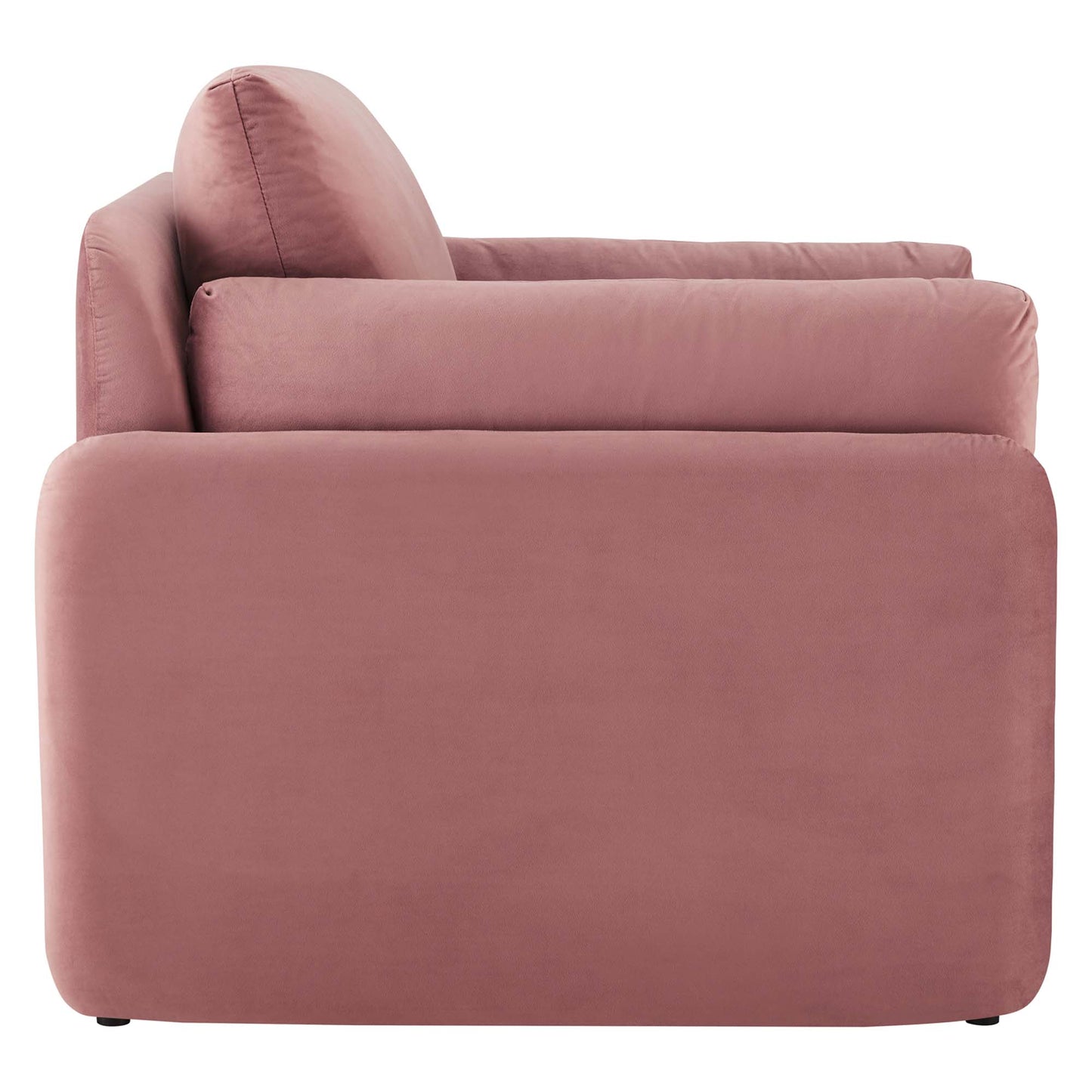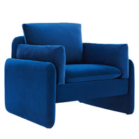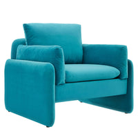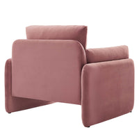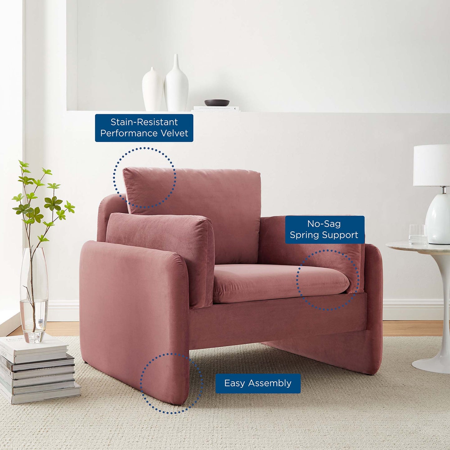 Reimagine your living space with the modern style and glam deco elegance of the Indicate Performance Velvet Armchair. Featuring a casual design with rounded corners and plush foam cushions, the look of this comfortable armchair is elevated by its luxurious stain-resistant performance velvet upholstery making it perfect for a living room, office, bedroom, or other lounge area. A no-sag spring support system grants a premium seating experience while non-marking foot caps protect your flooring. This accent chair ships conveniently to your doorstep in a portable box for effortless maneuvering with easy-to-follow assembly instructions. Weight Capacity: 330 lbs.