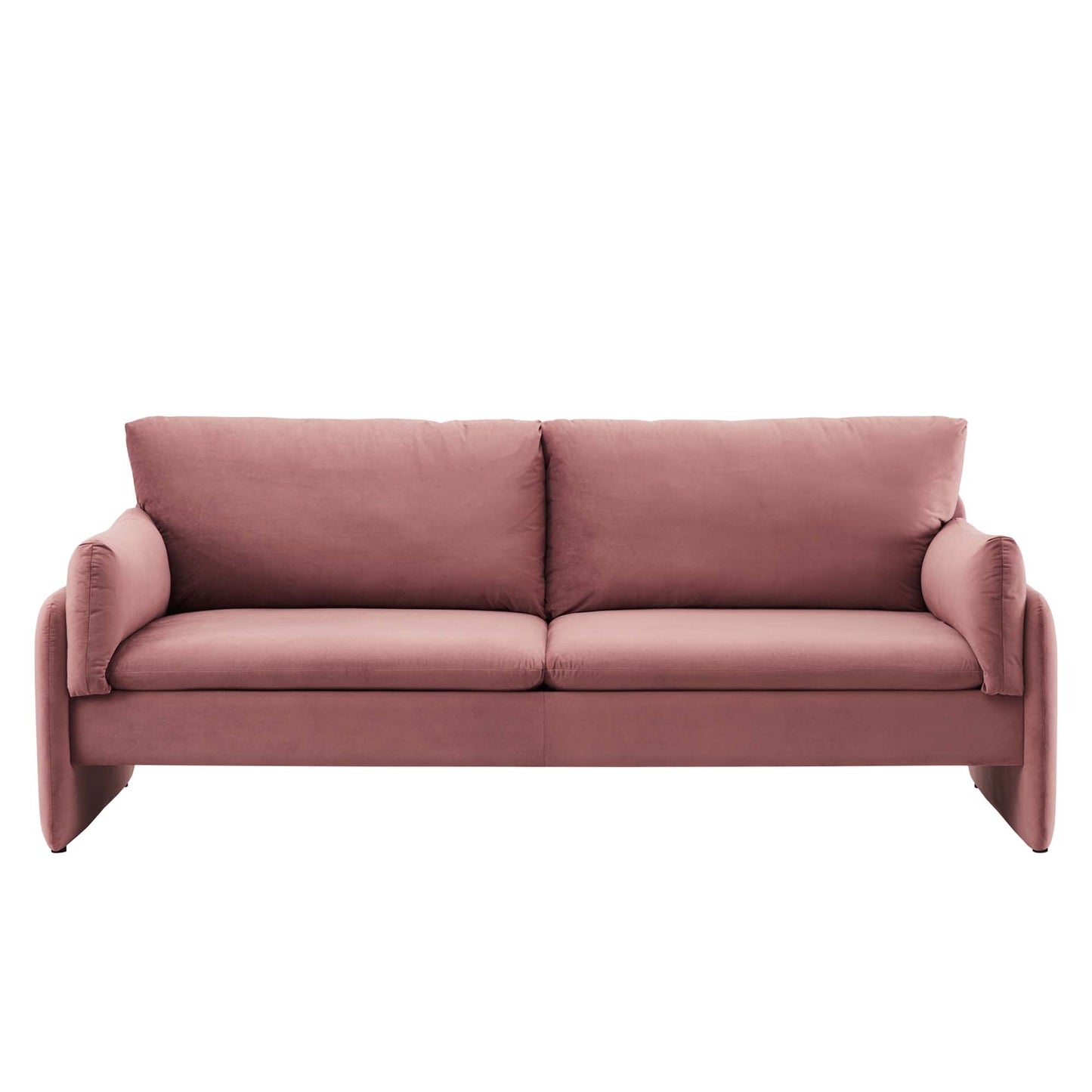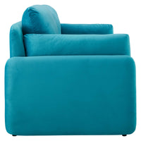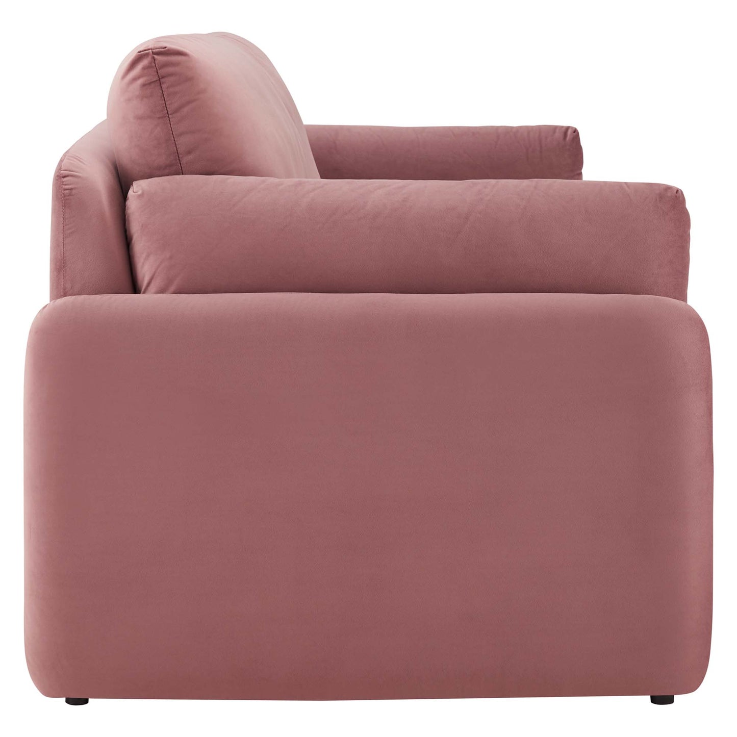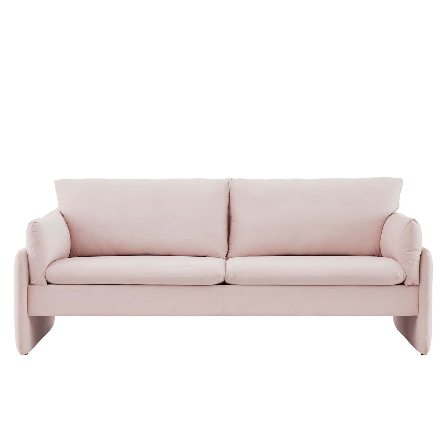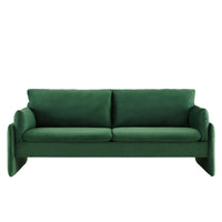 Reimagine your living space with the modern style and glam deco elegance of the Indicate Performance Velvet Sofa. Featuring a casual design with rounded corners and plush foam cushions, the look of this comfortable sofa is elevated by its luxurious stain-resistant performance velvet upholstery making it perfect for a living room, office, bedroom, or other lounge area. A no-sag spring support system grants a premium seating experience while non-marking foot caps protect your flooring. This living room sofa ships conveniently to your doorstep in a portable box for effortless maneuvering with easy-to-follow assembly instructions. Weight Capacity: 992 lbs.