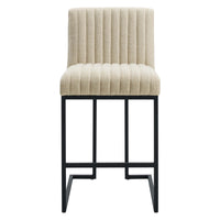 Inspire retro design and modern style in your dining area with the Indulge Channel Tufted Counter Stool. Mid-century inspired channel tufting flows effortlessly into the matte black stainless steel sled base of this dining counter stool. Covered in soft polyester fabric, this upholstered counter bar stool is complete with dense foam padding creating a comfortable, supportive place to sit while dining. Bring contemporary style to a kitchen or dining area with this tufted counter bar stool. Includes non-marking foot caps. Counter Bar Stool Weight Capacity: 330 lbs.