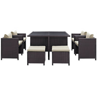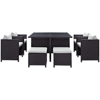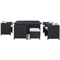 Restore balance to your outdoor patio or backyard setting as you assemble around the Inverse Outdoor Patio 52" Dining Table and Chair set. Transition from an espresso wicker rattan expanse to a colorful cushioned realm of harmonized opposites. With an all-weather rattan base and cushion covers, Inverse Outdoor Dining Furniture Set helps you place conscious emphasis on ultimate forms of expression no matter what the climate.