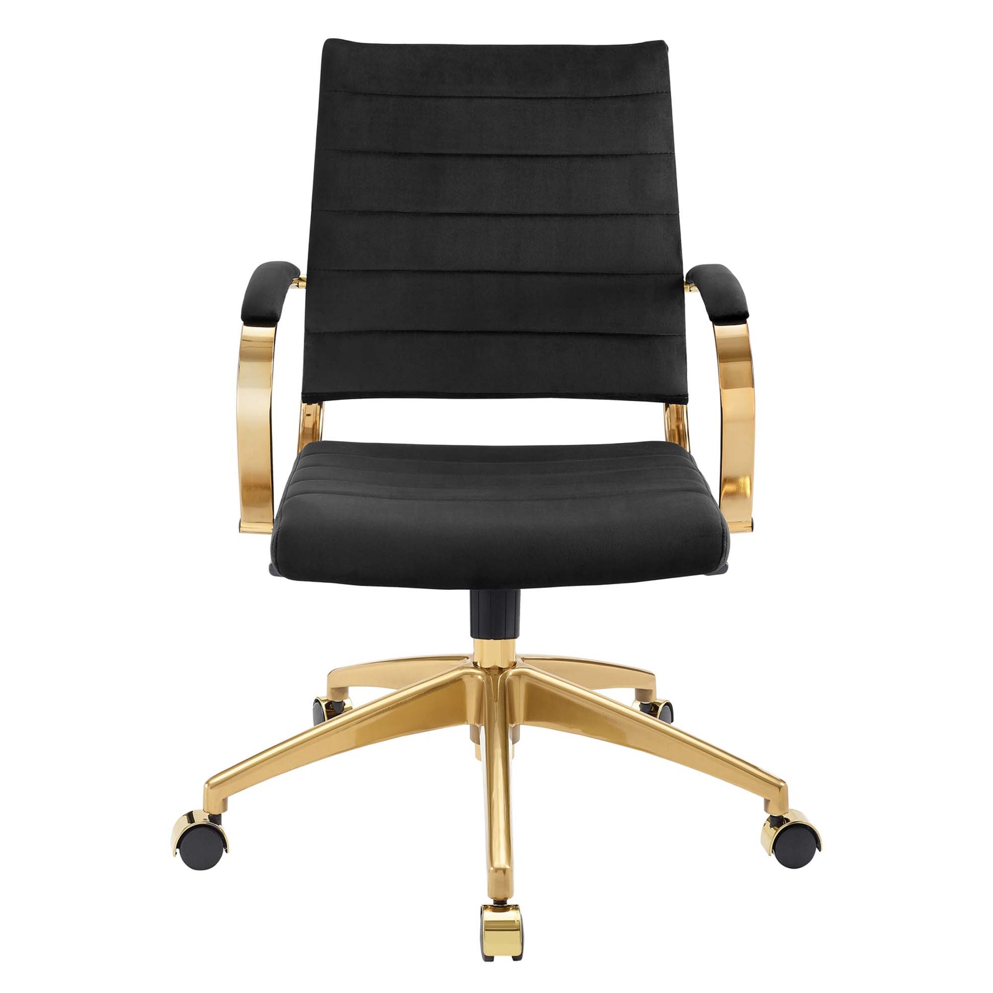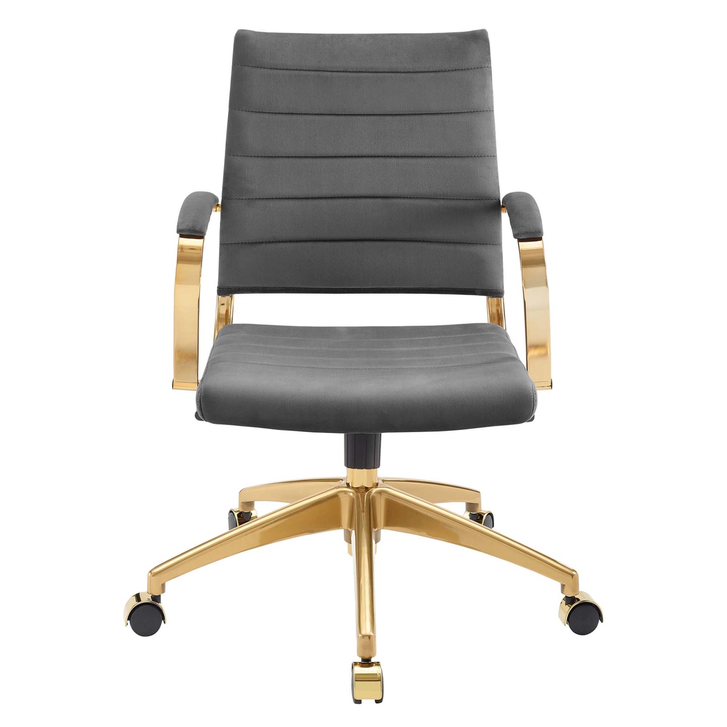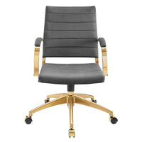 Steer the course and sail to an island called style. Jive is the result of chair makers who decided to design a chair that just works. Functionally, it is a pleasure to sit in as the durable ribbed velvet back provides natural posture support. The seat cushion is padded and upholstered in stain-resistant performance velvet, and the form of the padded armrests was intended to maximize a 90-degree wrist angling for typing. Jive’s chrome-plated aluminum base is fitted with five dual-wheel casters, while a tension knob and tilt lock allow for easy back position adjustments. This is a chair made for the modern office and a welcome embodiment of the spirit of progress and determination.