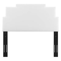 Elevate the style in your master bedroom or guest bedroom with the luxe texture, clean lines, and escalating silhouette of the Kasia Performance Velvet King/California King Headboard. Rich in glam deco style and vintage modern elegance, this padded headboard is upholstered in soft, stain-resistant performance velvet and features dense foam to offer supportive comfort while sitting up in bed resting, relaxing, reading, or watching TV. A beautiful backdrop for a variety of bedding styles, this adjustable headboard fits almost any king or California king bed with its three mounting positions. Assembly required.