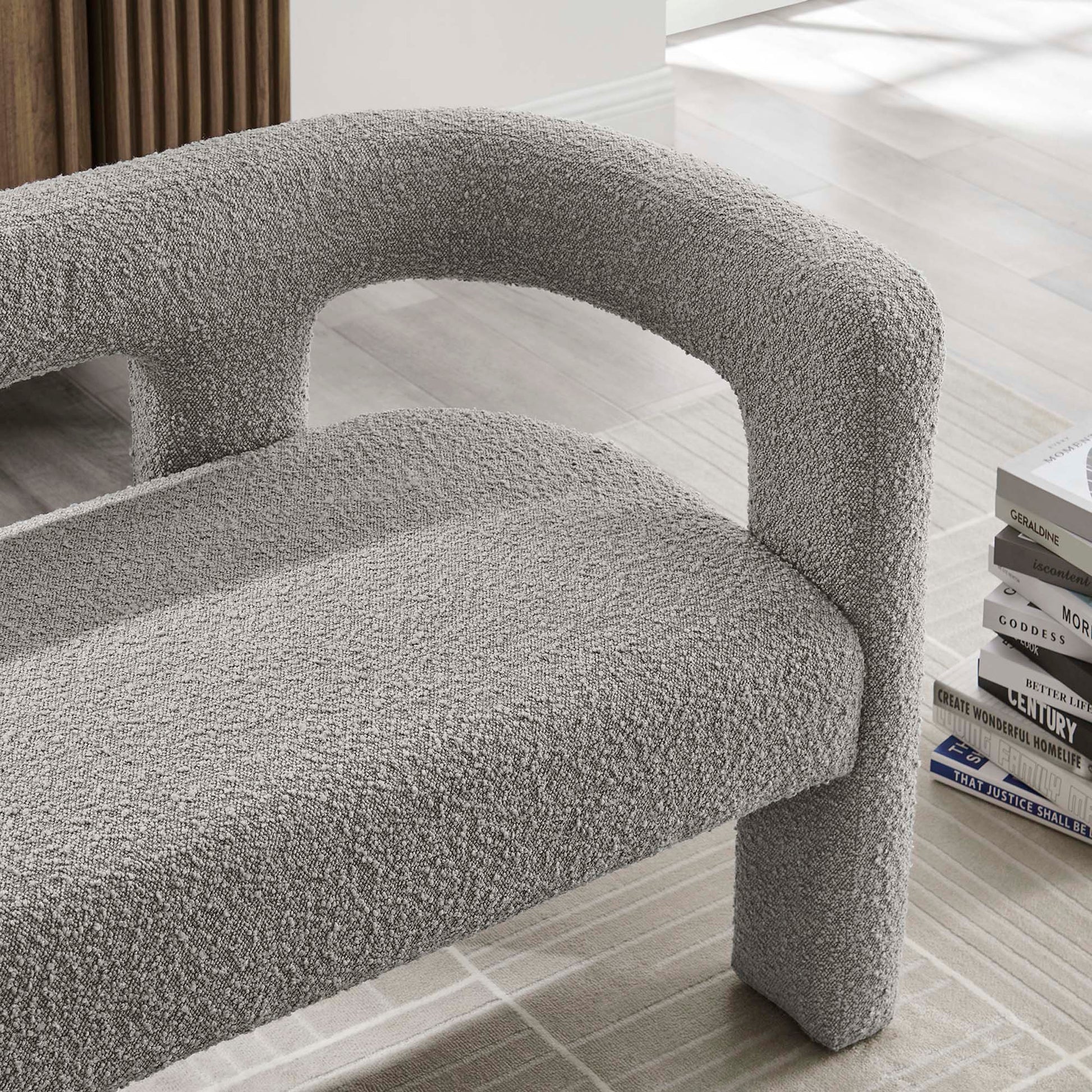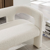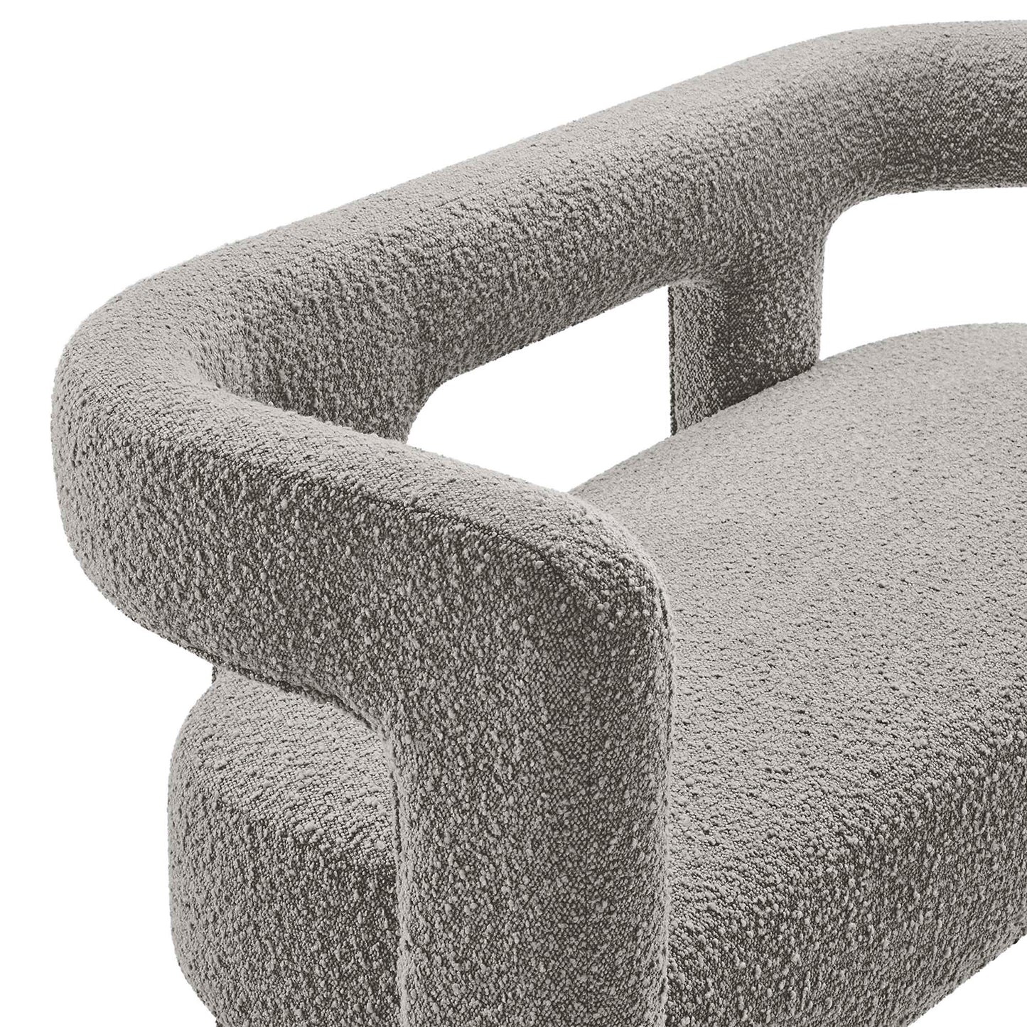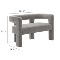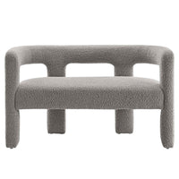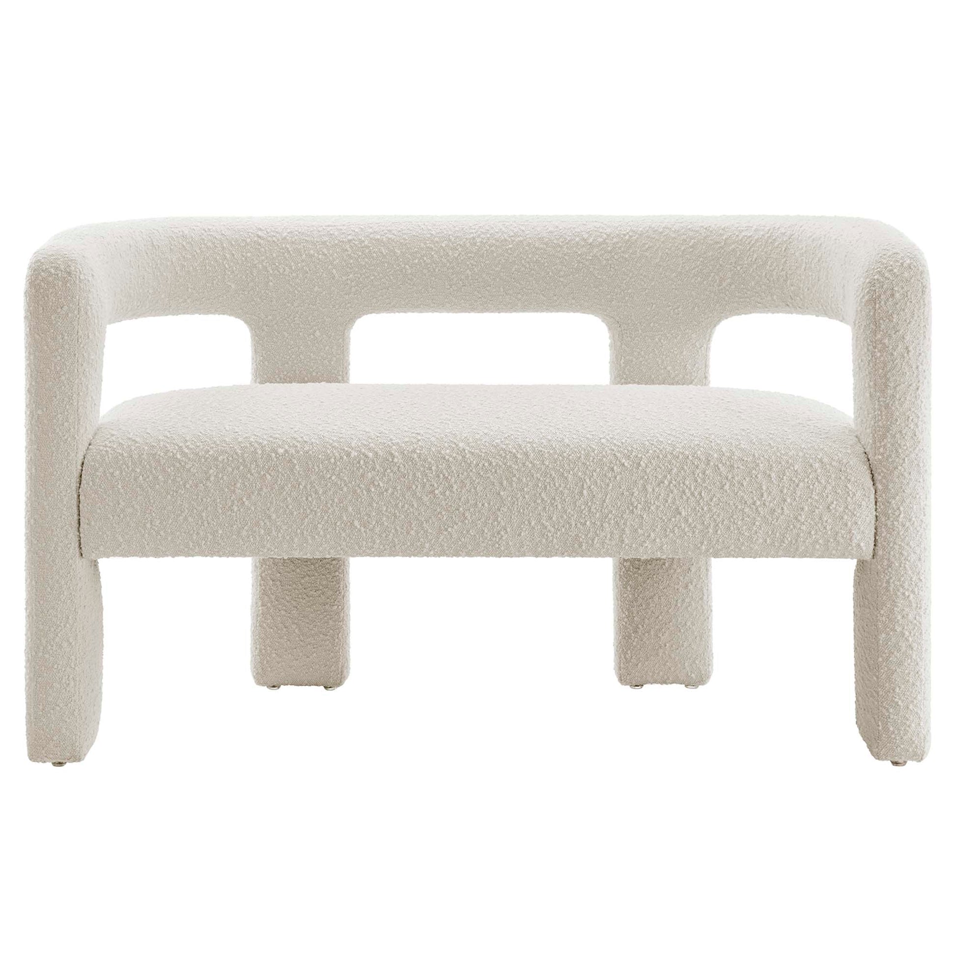 Experience unmatched comfort and sleek modernity with the Kayla Boucle Loveseat. Its progressive design and rounded open profile make a chic statement in any space. The boucle fabric adds a delightful touch with its charming nubby texture. Crafted with a sturdy wood frame, sinuous spring support, and dense foam padding, this two-seater sofa offers premium comfort and durability. Non-marking foot glides protect your floors. Elevate your space with the Kayla Boucle Loveseat—where modern luxury meets everyday elegance. Weight Capacity: 660 lbs.