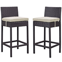 Hop on and let Lift Outdoor Patio Bar Stool elevate your spirits. Procure a new view as you tilt back your favorite concoction with this wicker rattan cushioned patio bar stool. Lift Outdoor Bar Stool is a perfect addition to your patio, porch, deck, sunroom or any outdoor bar. The generous and comfortable UV resistant cushion seats and all-weather wicker rattan weave provide a steady perch.