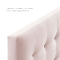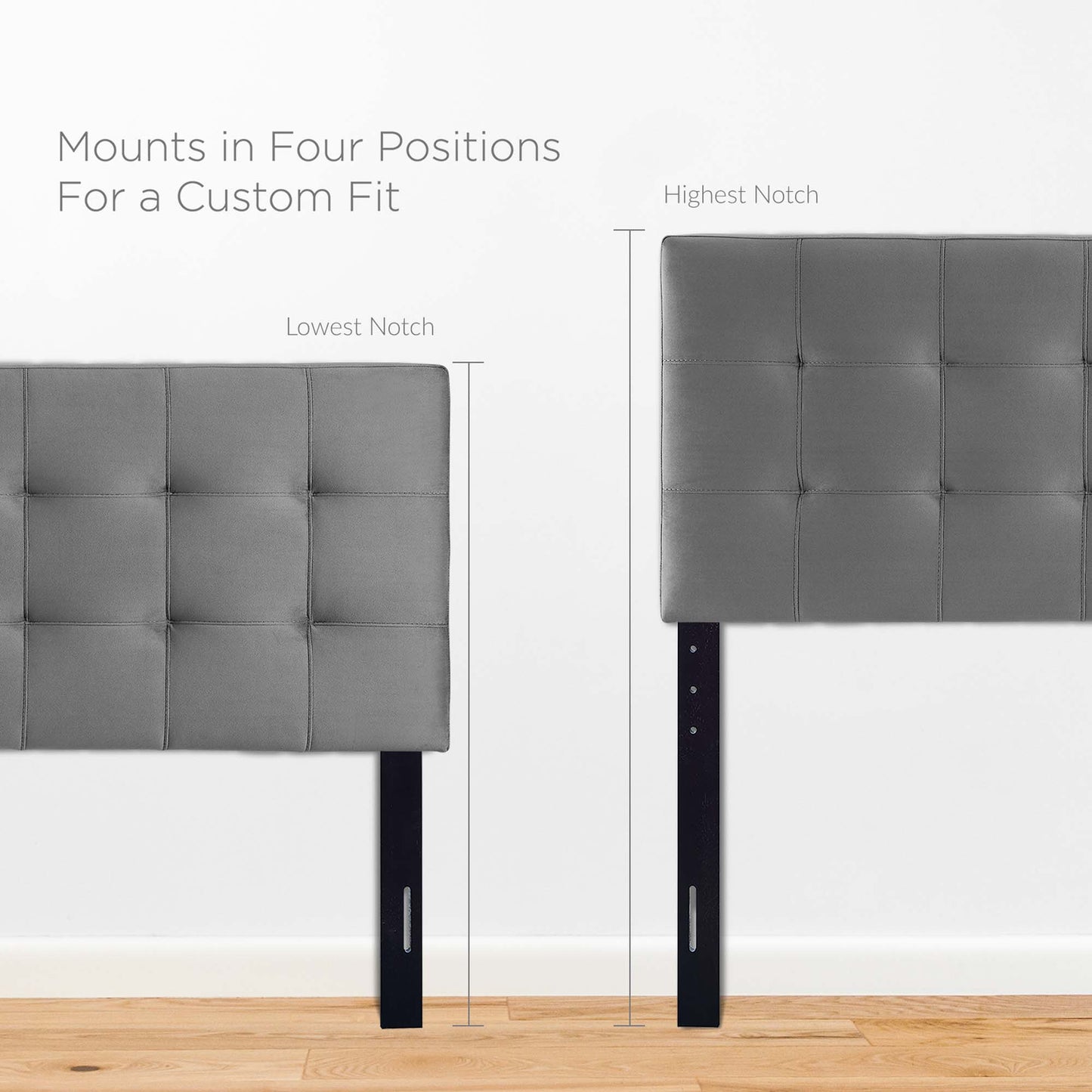 Instill classic elegance and modern luxury with the Lily Queen Biscuit Tufted Performance Velvet Headboard. Lily features charming biscuit tufting for plush vintage glamour and timeless appeal. An elegant centerpiece to the master bedroom or guest suite, this upholstered velvet headboard for queen bed frames provides a soft, stain-resistant update for premium comfort while relaxing, reading, or conversing in bed. Solidly constructed from plywood and fiberboard with dense foam padding, this queen size velvet headboard comes with five mounting positions that are height adjustable from 45" - 52.5".