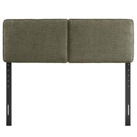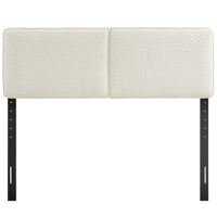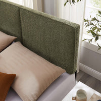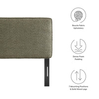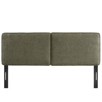 Embrace elegance and comfort in a primary bedroom or guest bedroom with the Lindee King Headboard, a statement piece that merges plush comfort with sophisticated design. This king size fabric headboard is upholstered in textured boucle fabric that offers a tactile charm, and features French piping trim that outlines the dual panels. The dense foam padding and pillow-style design grants a soft, cushioned backdrop for nightly reading or relaxing in bed. Supported by solid wood legs and equipped with seven mounting positions, this king upholstered headboard provides both durability and versatility to fit various bed frames. The Lindee king size headboard is a transformative bedroom upgrade that combines form and function with an upholstered boucle headboard appeal, making it a quintessential element for any restful sanctuary. Assembly required.