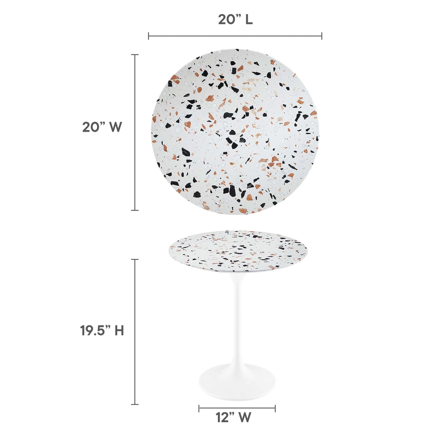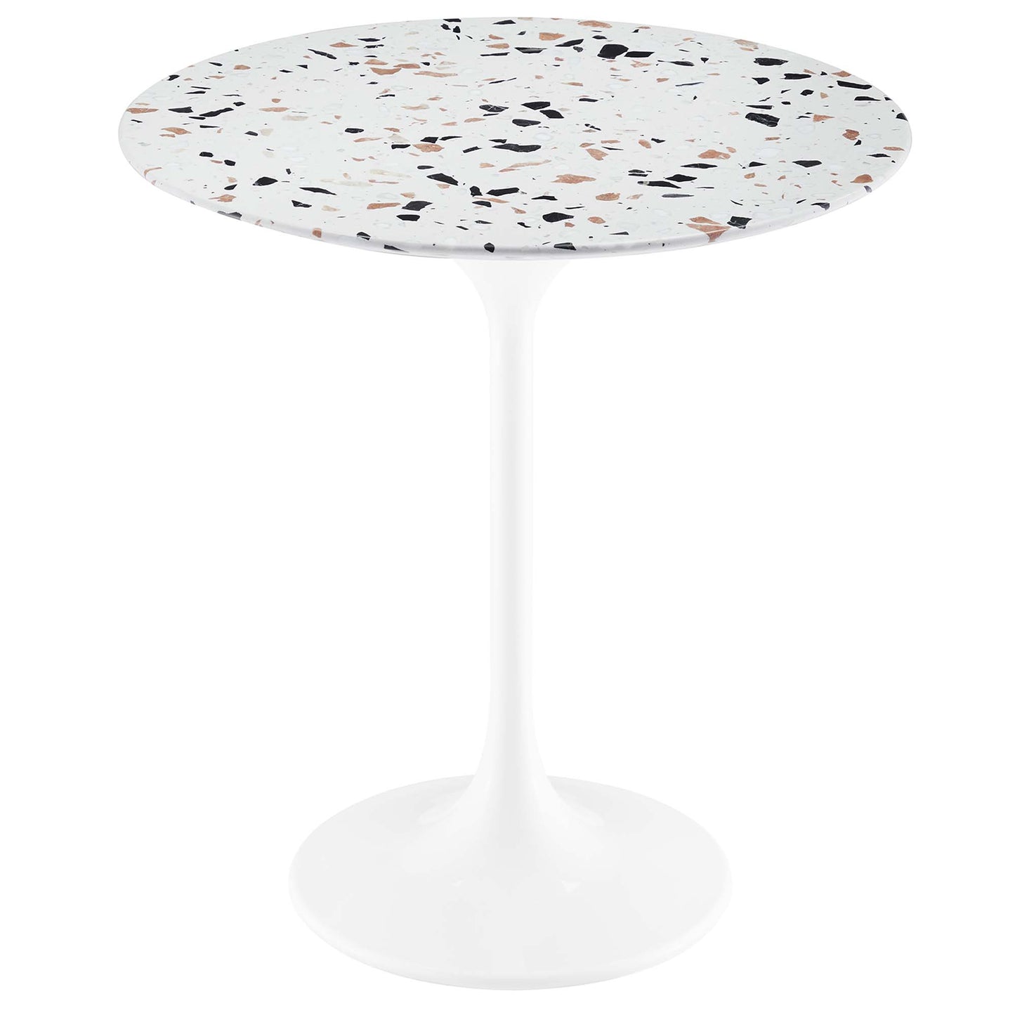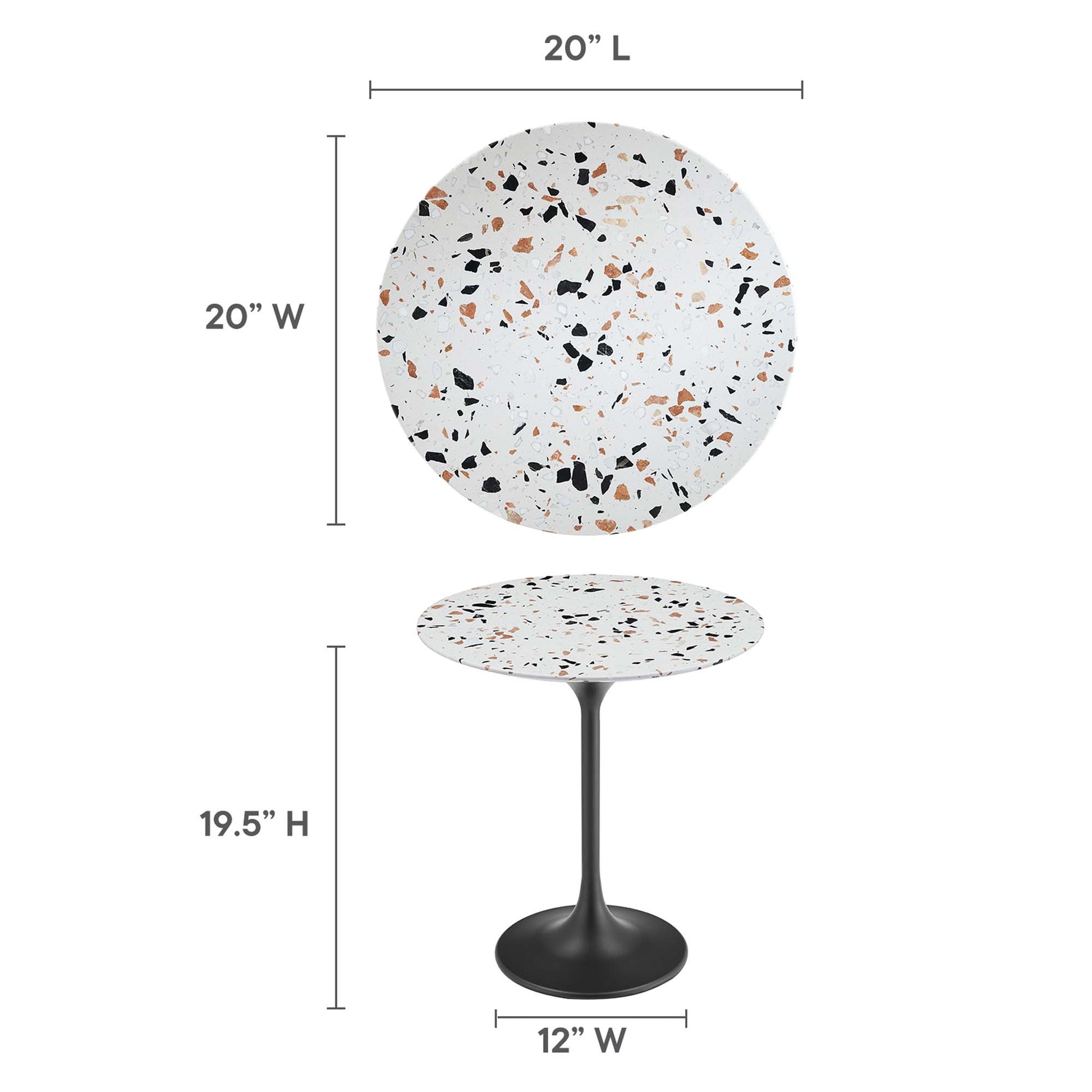 Let modern inspiration flow from the Lippa 20" Round Side Table. This pedestal table is perfect for the living room, office, lounge area, or entryway. Its round tabletop is crafted with terrazzo and features a beveled edge for a contemporary yet timeless design. Embodying an iconic mid-century silhouette, this pedestal dining table floats on a sleek tapered metal pedestal base with a chip-resistant lacquered finish. Includes non-marking felt pad to protect flooring. Assembly required.