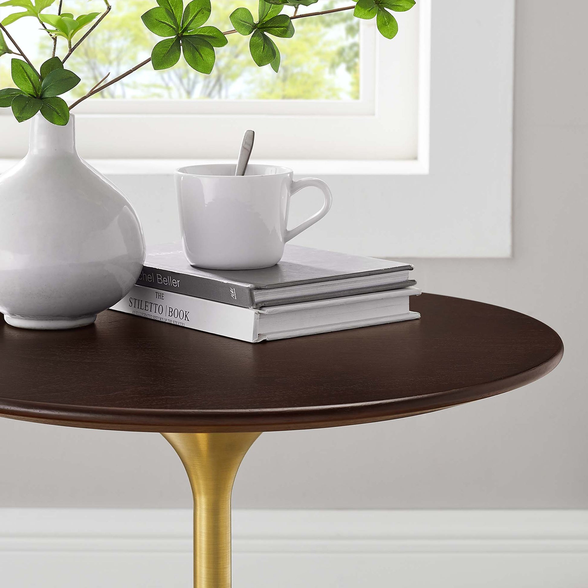 Let modern inspiration flow from the Lippa 20" Round Side Table. This pedestal table is perfect for the living room, office, lounge area, or entryway. Its round tabletop is crafted with MDF and wood grain veneer with a beveled edge for a contemporary yet timeless design. Embodying an iconic mid-century silhouette, this pedestal dining table floats on a sleek tapered metal pedestal base with a chip-resistant lacquered finish. Includes non-marking felt pad to protect flooring. Assembly required.