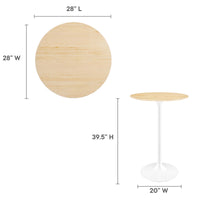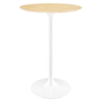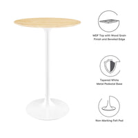Let modern inspiration flow while gathered around the Lippa 28" Round Bar Table. Perfect for entertaining family and friends or everyday dining, this pedestal table comfortably seats two. Its round tabletop is crafted with MDF with a wood grain veneer and beveled edge for a contemporary yet timeless design. Embodying an iconic mid-century silhouette, this pedestal bar-height table floats on a sleek tapered metal pedestal base with a chip-resistant powder-coated finish. Includes non-marking felt pad to protect flooring. Assembly required.