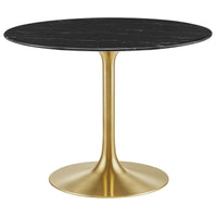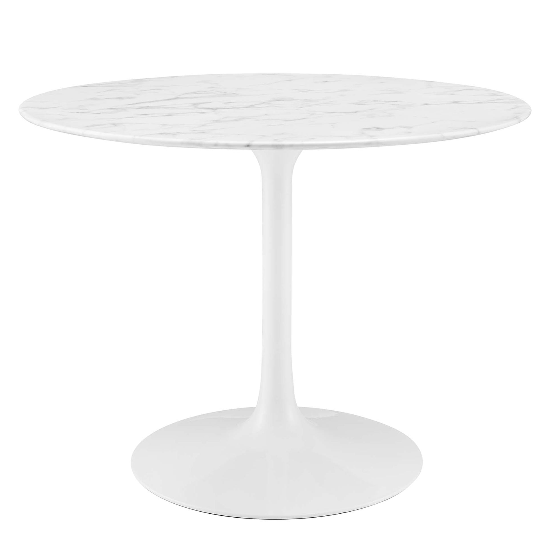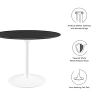 Let modern inspiration flow while gathered around the Lippa 40" Round Artificial Marble Dining Table. Perfect for entertaining family and friends or everyday dining, this pedestal table comfortably seats two. Its round tabletop is crafted with artificial marble and beveled edge for a contemporary yet timeless design. Embodying an iconic mid-century silhouette, this pedestal dining table floats on a sleek tapered metal pedestal base with a chip-resistant lacquered finish. Includes non-marking felt pad to protect flooring. Assembly required.